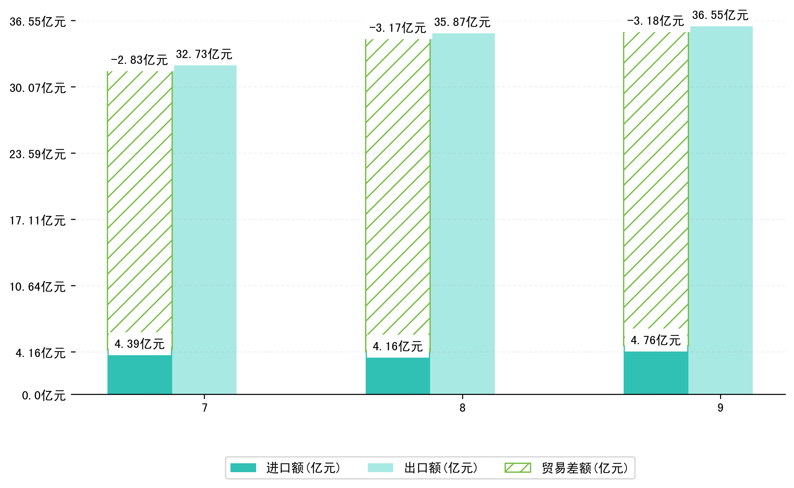 2025年9月滁州市进出口总额及进出口差额统计分析