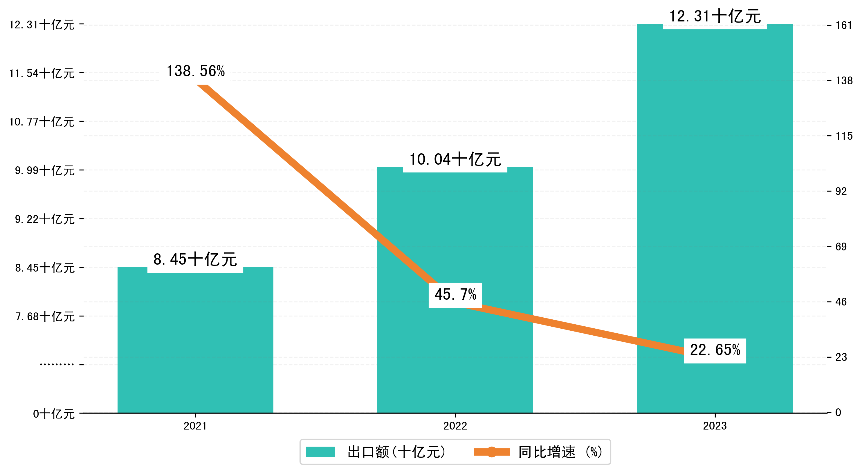 以人民币计,2023年1-4月滁州市出口额为123,1048.6714万元,相比上年同期增加了22,7371.4108万元,同比增加了22.70%。