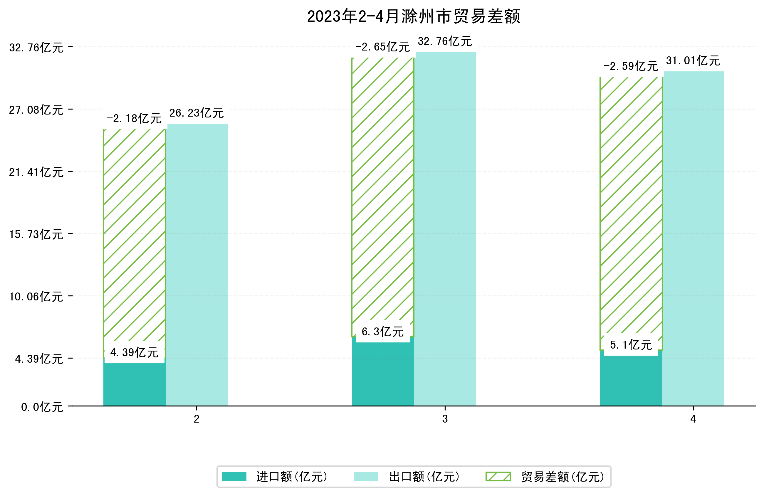 2023年4月滁州市进出口总额及进出口差额统计分析