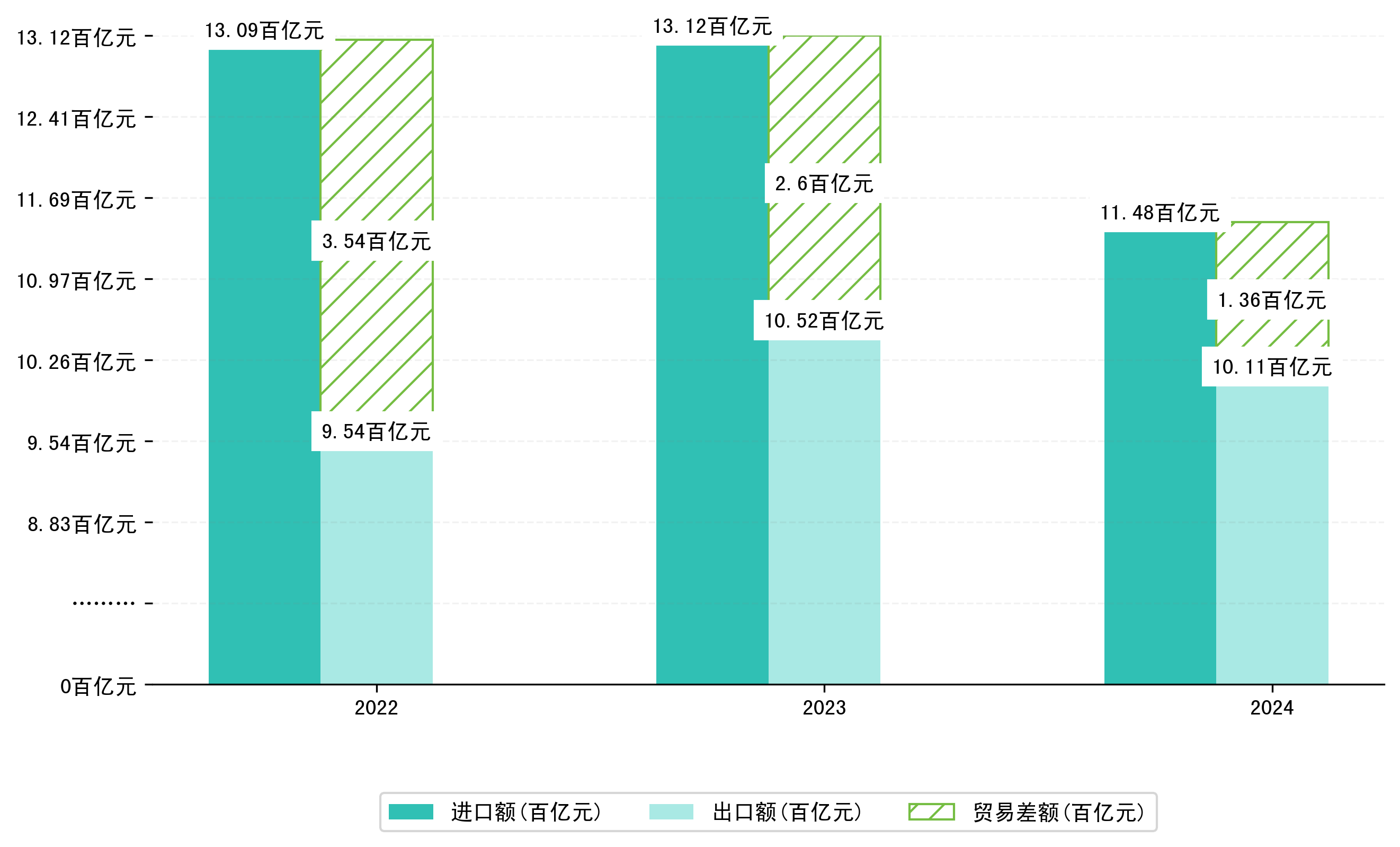 以人民币计,2024年1-6月大连市贸易差额为136,3610,7504万元(贸易逆差),相比上年同期增加了123,7201,5191万元,同比增加-47.57%。