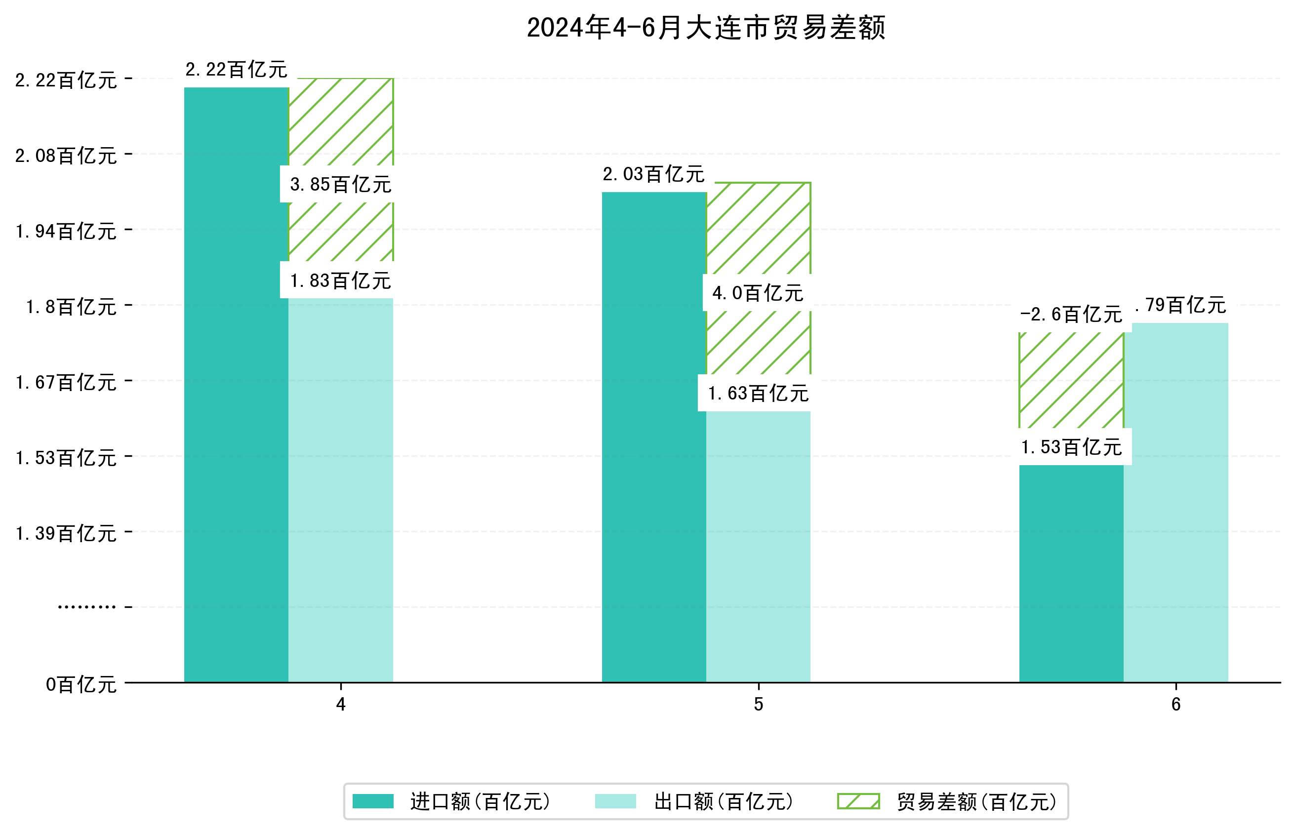 一、2024年6月大连市单月出口总额及进出口差额统计分析
