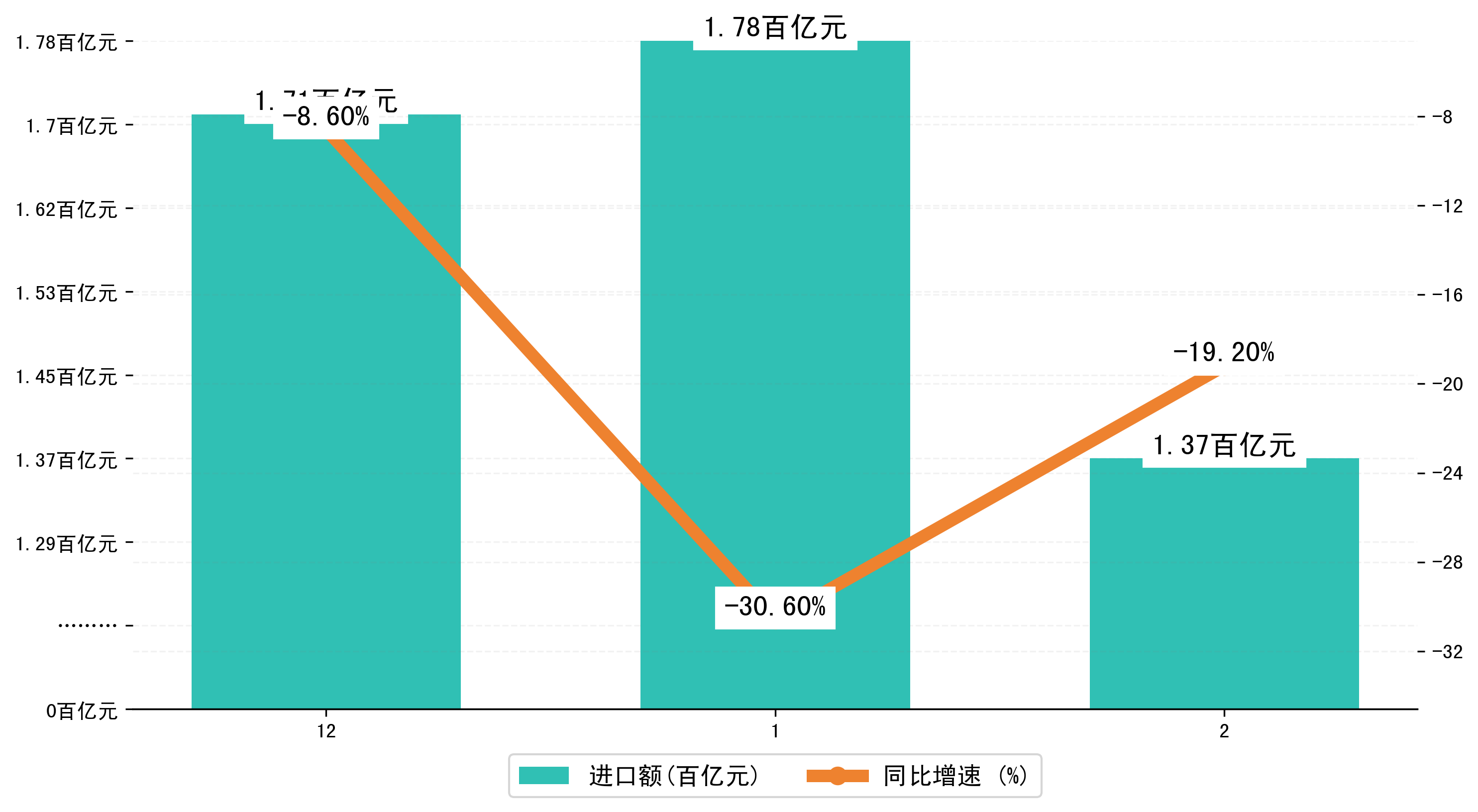 以人民币计,2024年2月大连市进口额为136,8173.6937万元,相比上月减少了41,3002.7792万元;相比上年同期增加了4,1934.4112万元,同比减少了-19.20%。