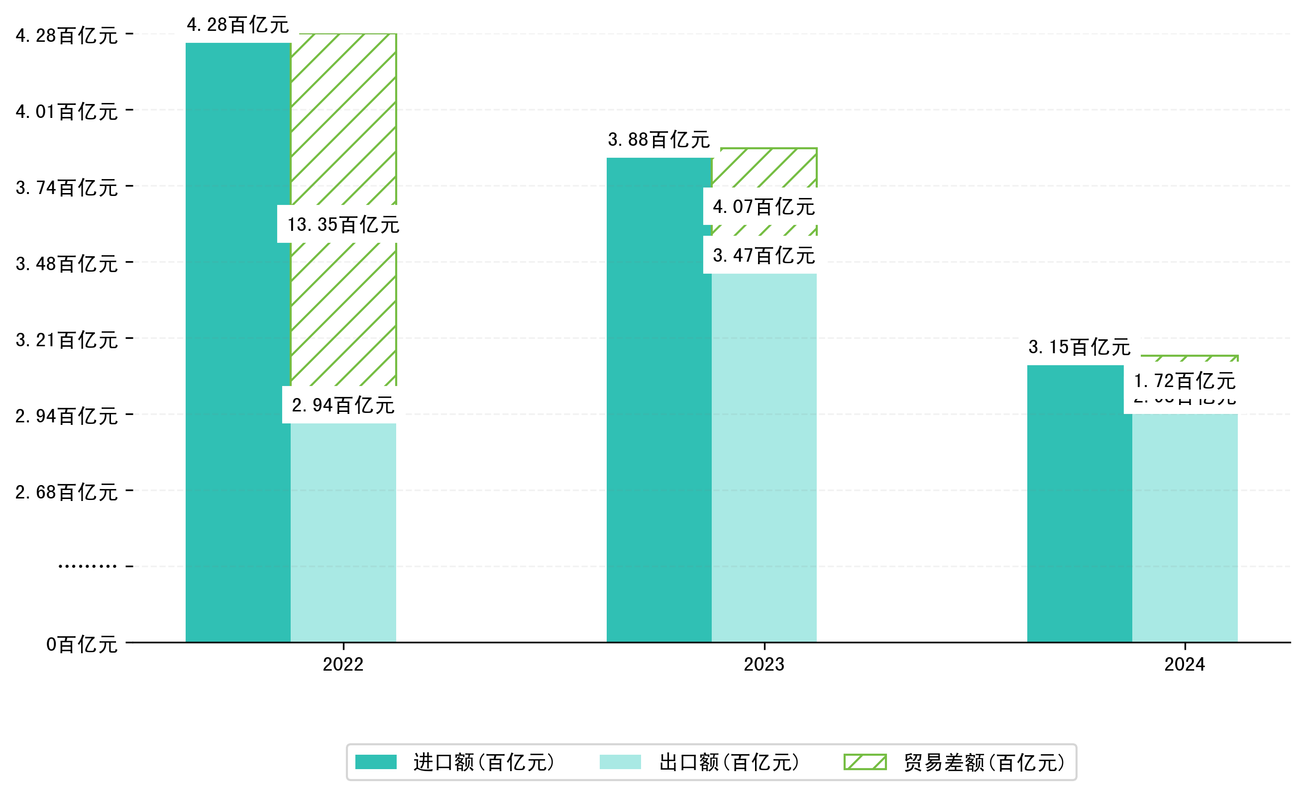 以人民币计,2024年1-2月大连市贸易差额为17,2418,3798万元(贸易逆差),相比上年同期增加了23,4439,8374万元,同比增加-57.62%。