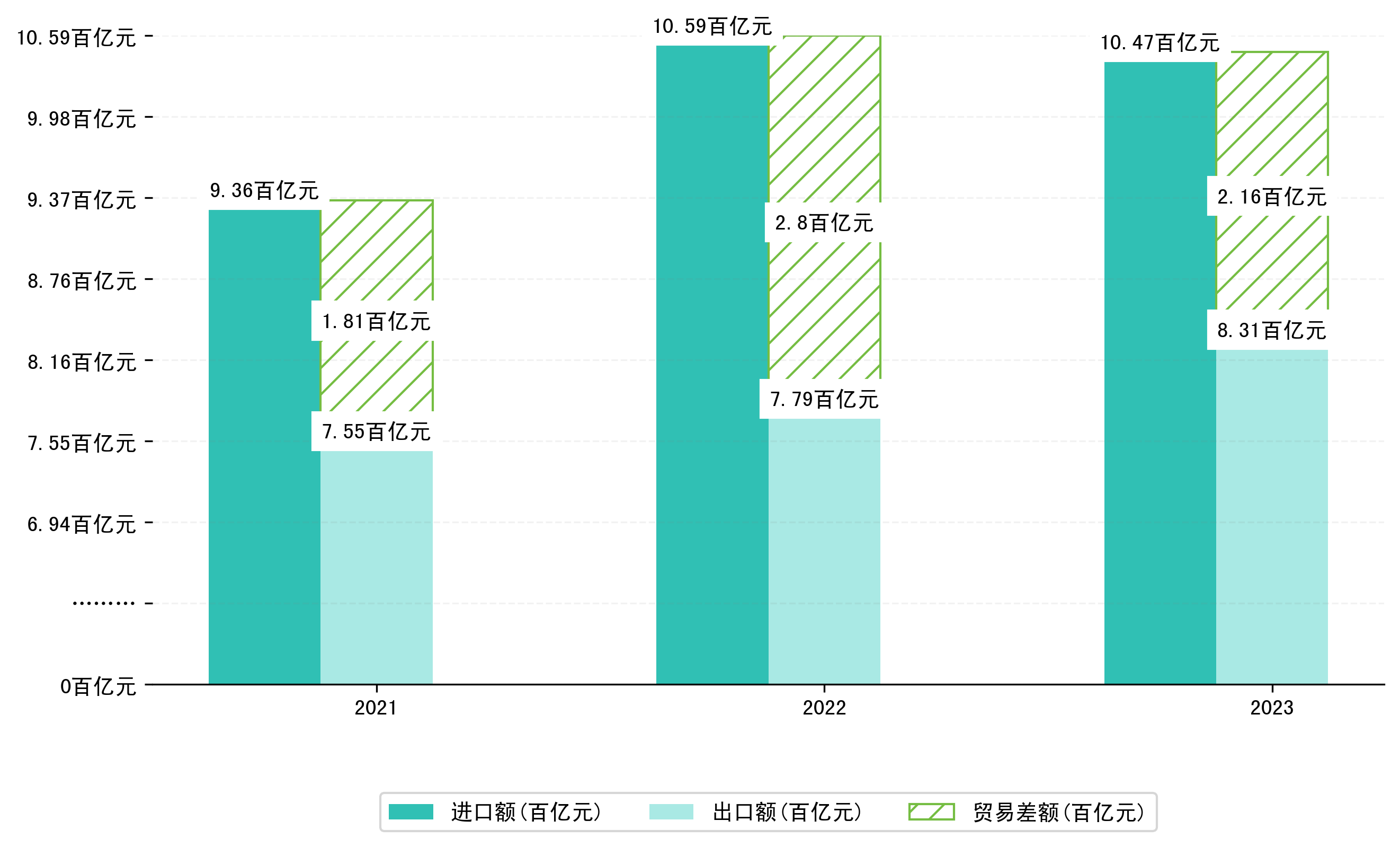 以人民币计,2023年1-5月大连市贸易差额为215,8375,8982万元(贸易逆差),相比上年同期增加了64,1879,1452万元,同比增加-22.92%。