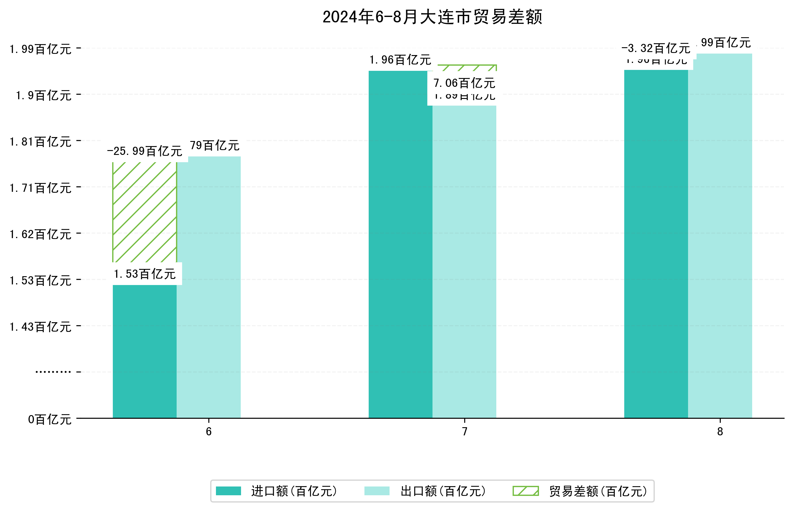 (图四:2024年6-8月大连市贸易差额)