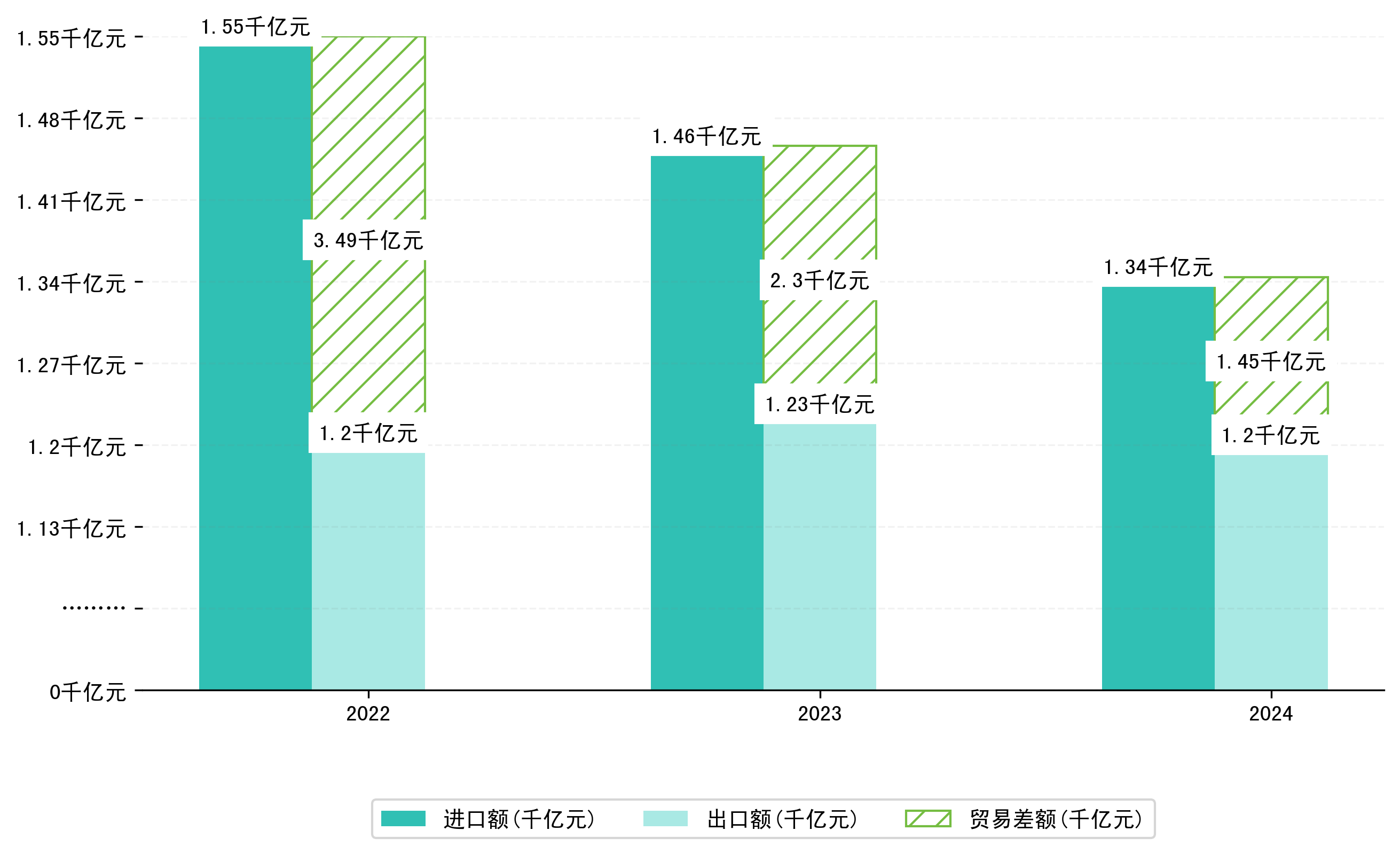 以人民币计,2024年1-7月大连市贸易差额为144,5284,4630万元(贸易逆差),相比上年同期增加了85,7995,2672万元,同比增加-37.25%。