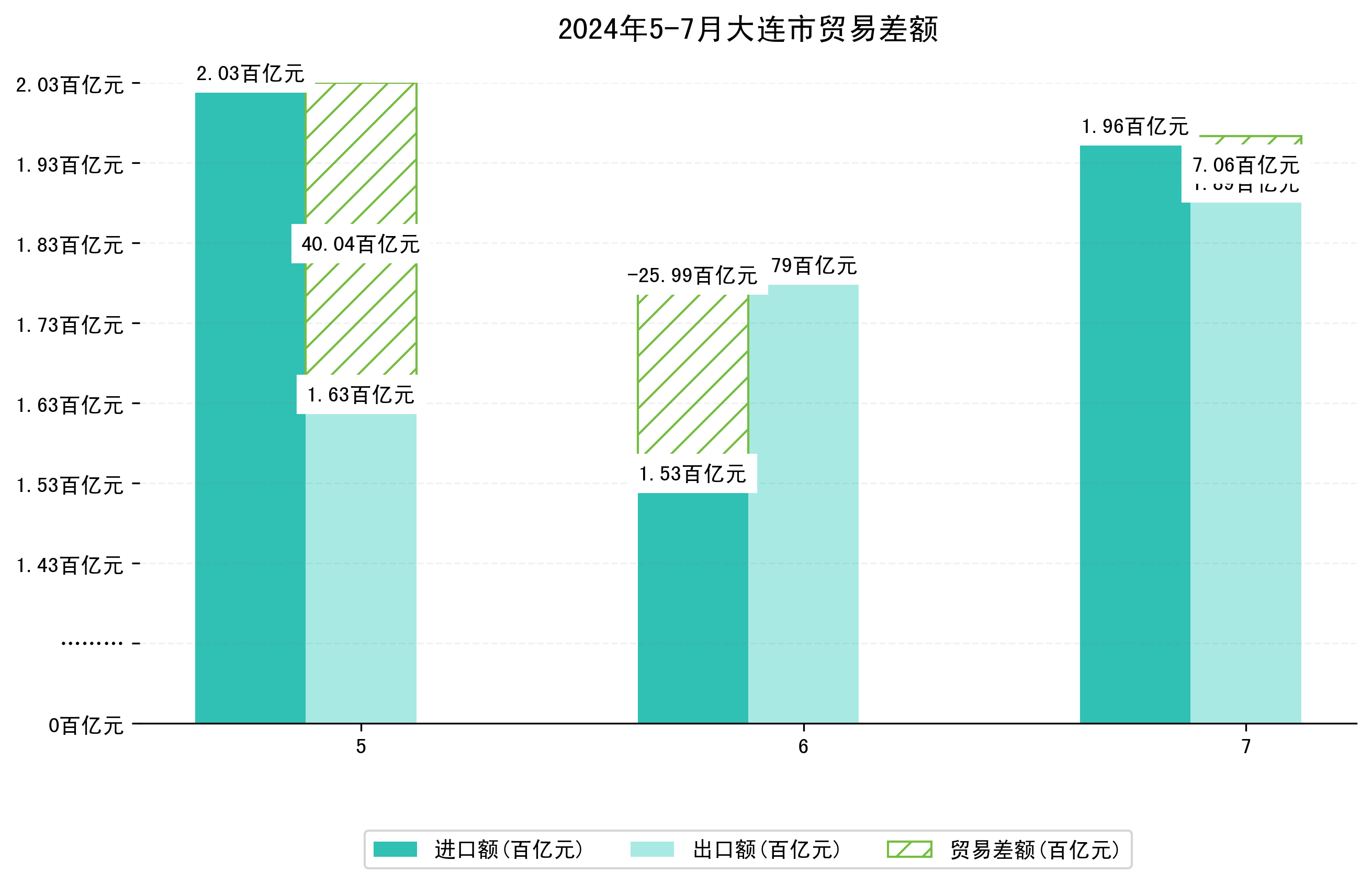 一、2024年7月大连市单月出口总额及进出口差额统计分析