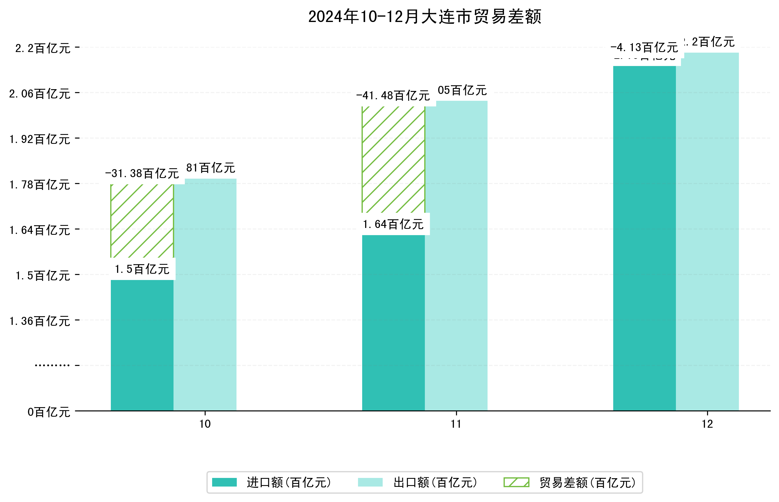 一、2024年12月大连市单月出口总额及进出口差额统计分析