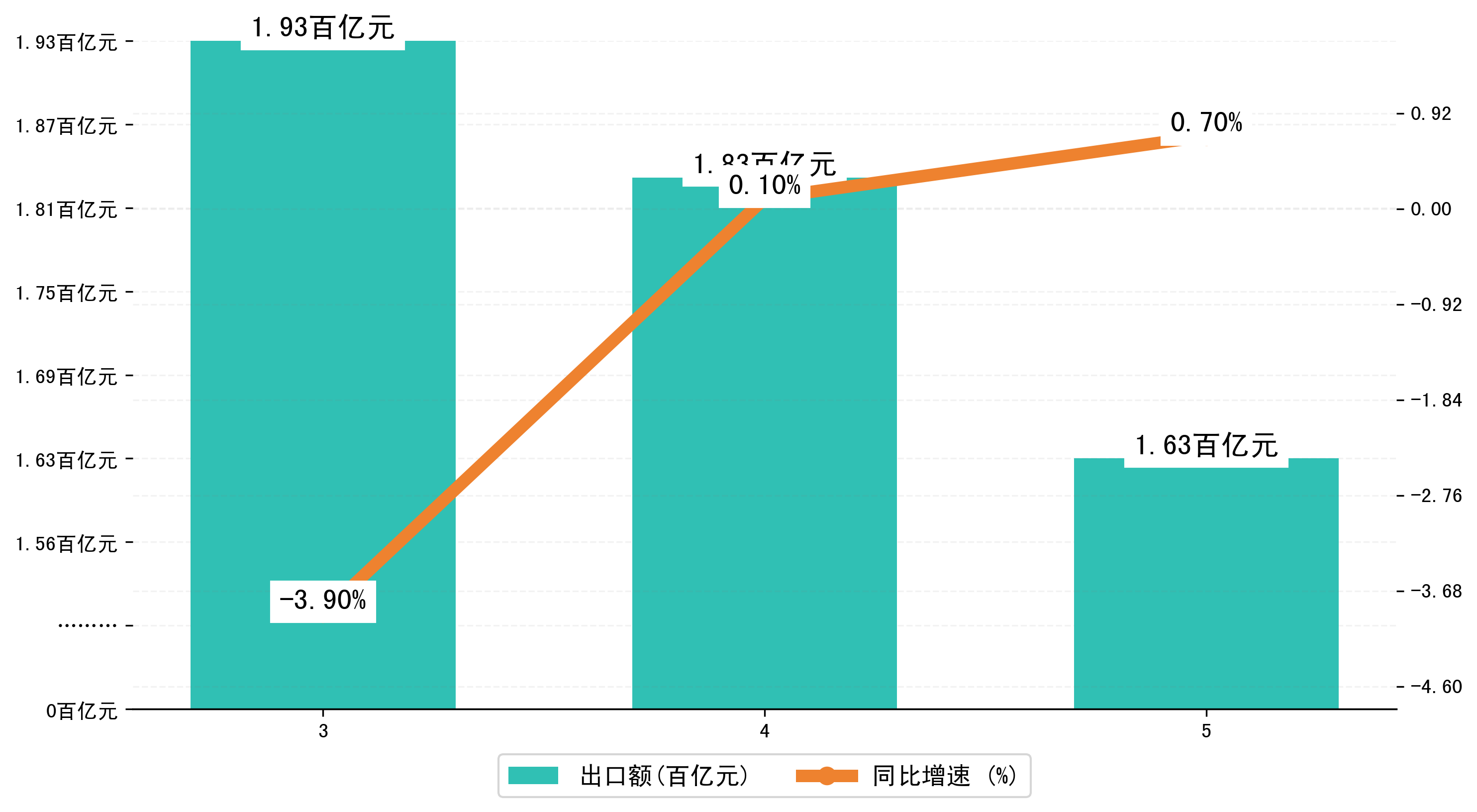 以人民币计,2024年1-5月大连市出口额为836,3074.915万元,相比上年同期增加了5,3962.5354万元,同比增加了0.70%。