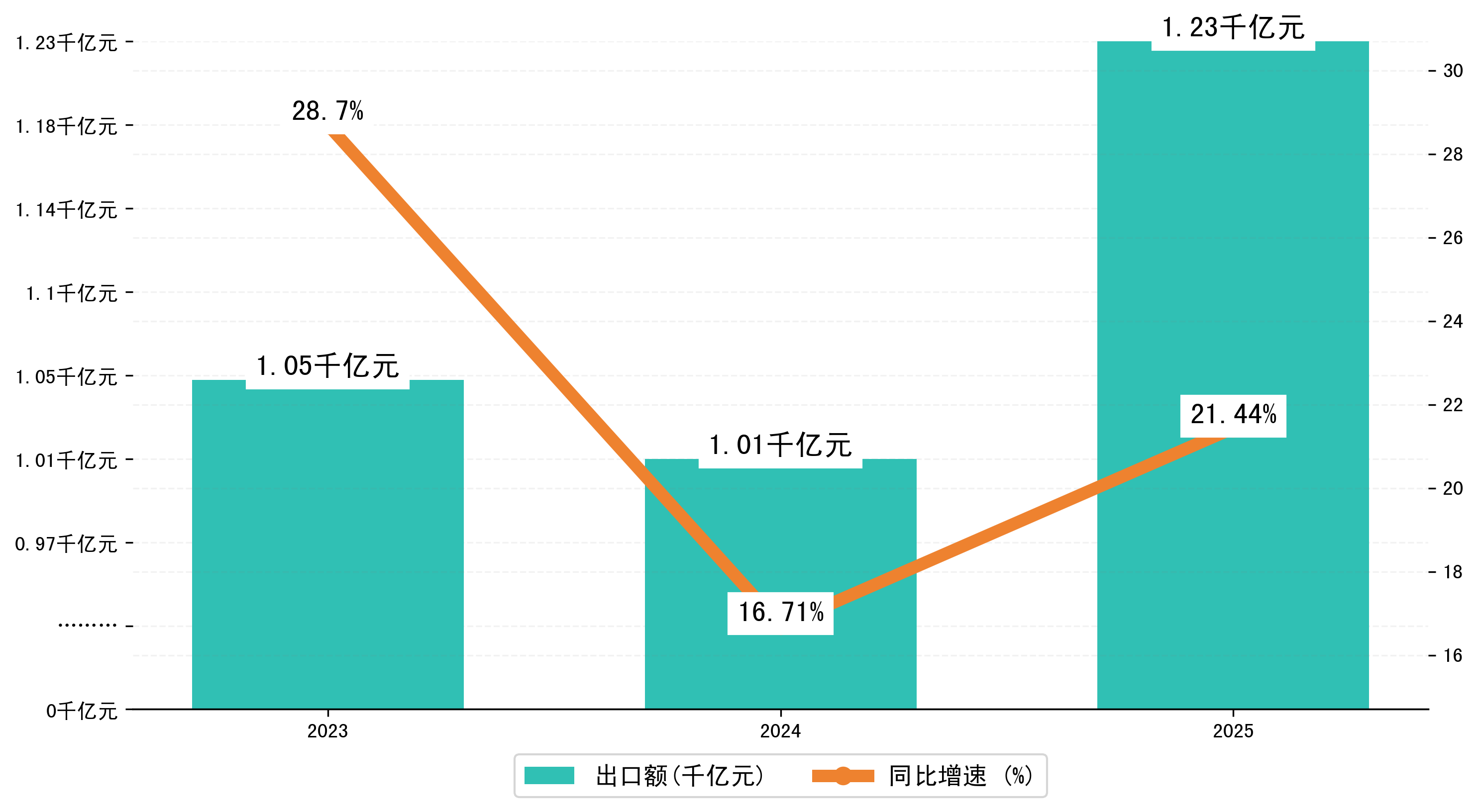 以美元计,2025年1-6月大连市出口额为170,8777.6394万美元,相比上年同期增加了28,5063.7609万美元,同比增加20.10%。