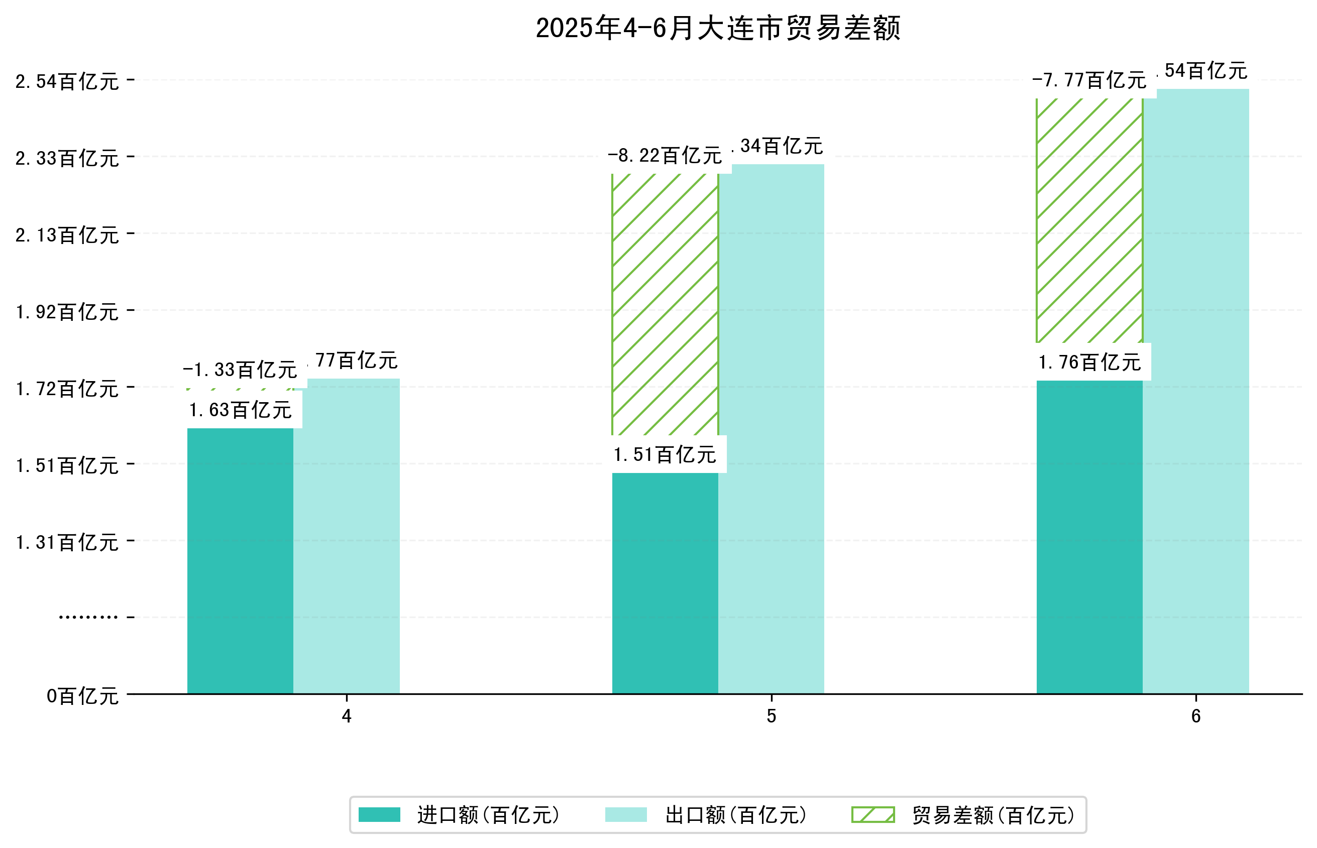 一、2025年6月大连市单月出口总额及进出口差额统计分析