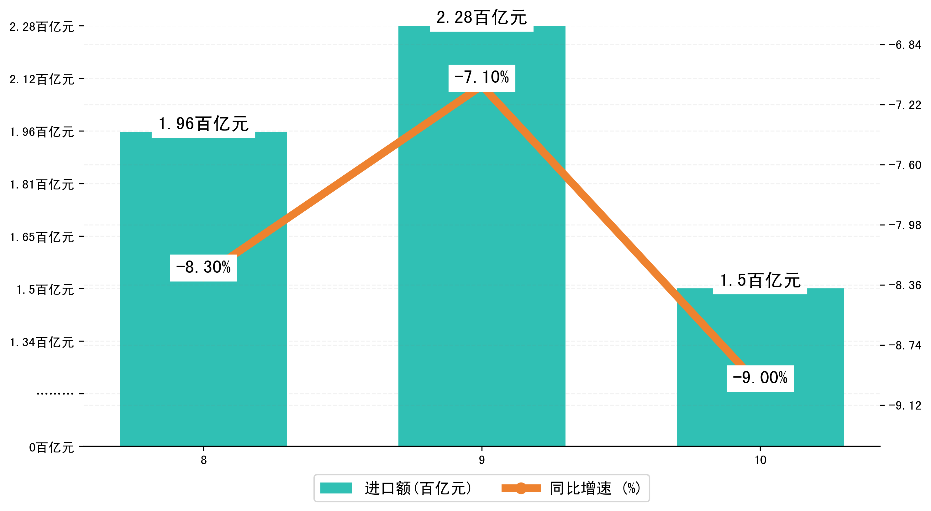 以人民币计,2024年10月大连市进口额为149,7589.5456万元,相比上月减少了77,8601.0049万元;相比上年同期减少了54,9153.7724万元,同比减少了-9.00%。