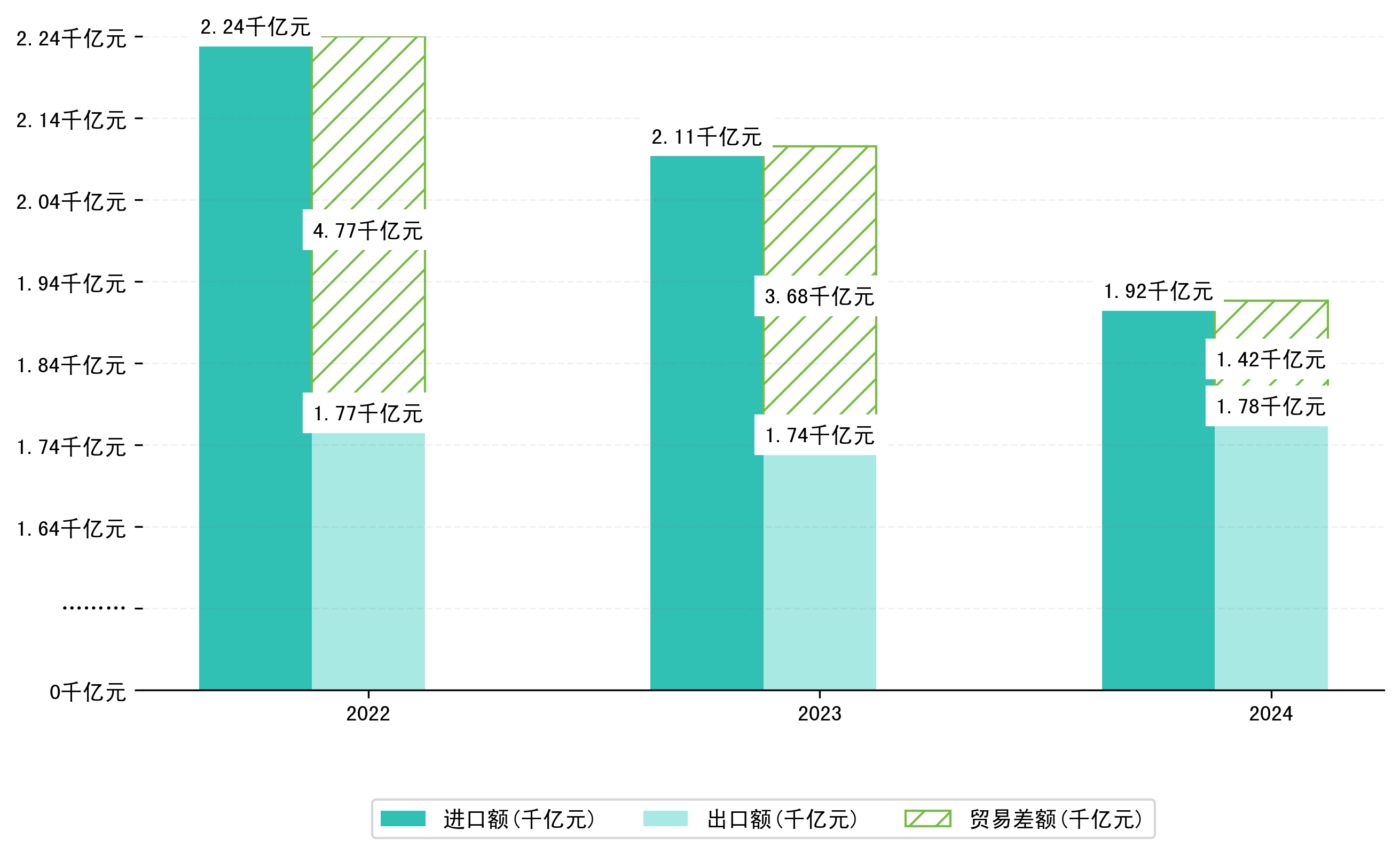以人民币计,2024年1-10月大连市贸易差额为142,3217,0365万元(贸易逆差),相比上年同期增加了225,9808,7058万元,同比增加-61.36%。