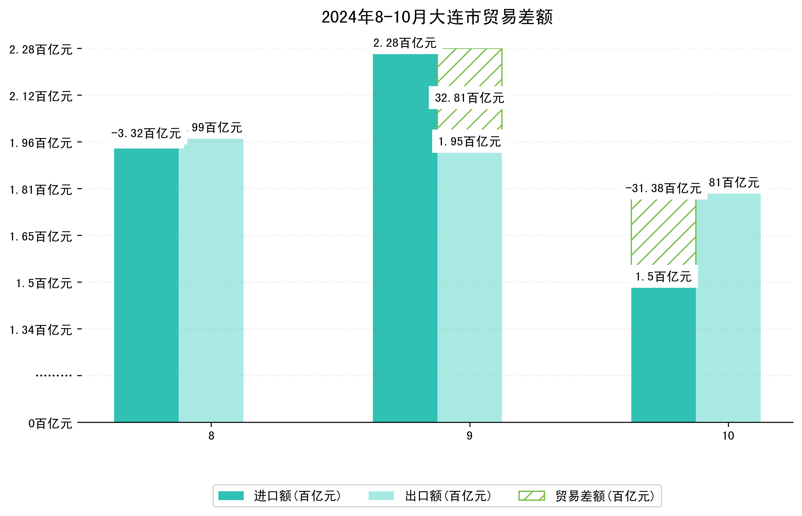 一、2024年10月大连市单月出口总额及进出口差额统计分析