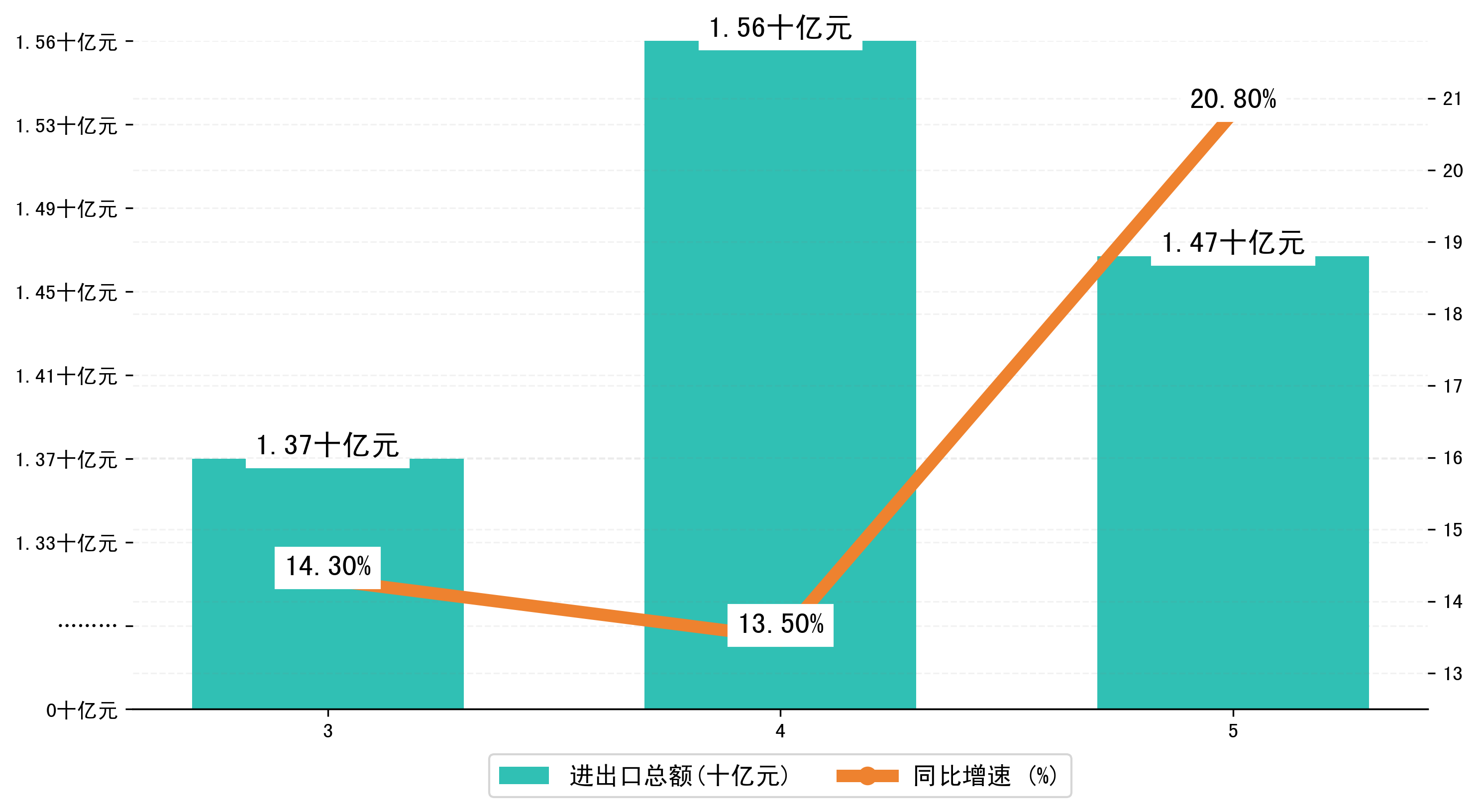 (图一:2023年3-5月丹东市进出口总额)