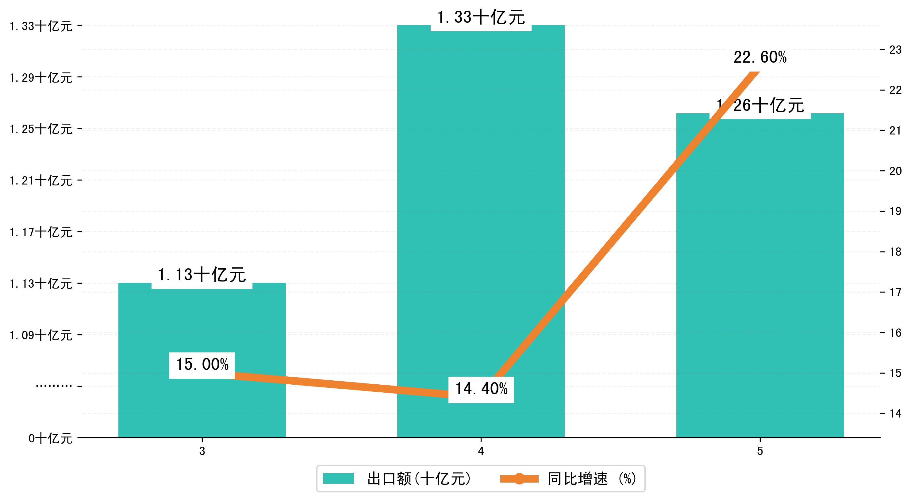 (图二:2023年3-5月丹东市出口额)