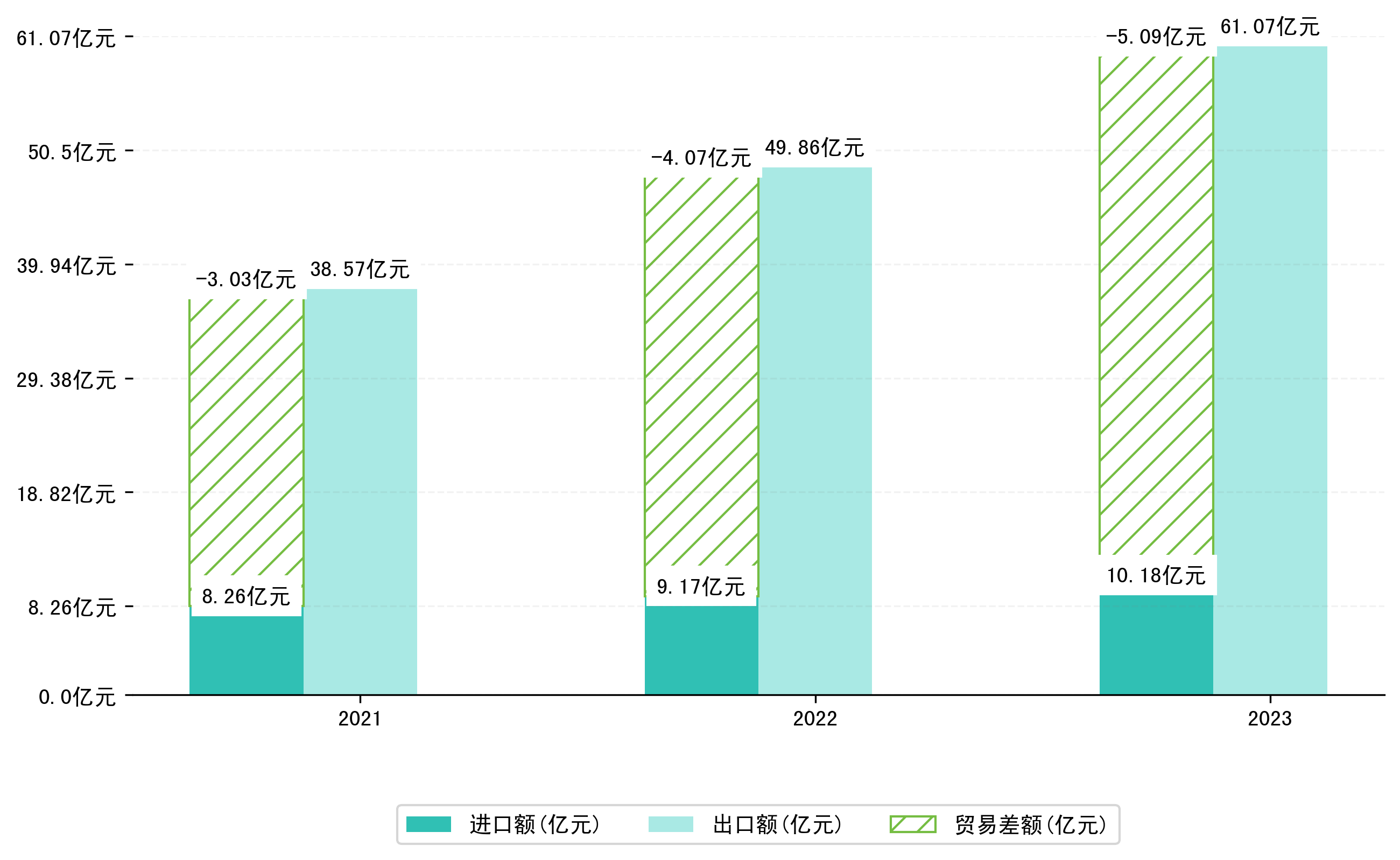 以人民币计,2023年1-5月丹东市贸易差额为50,8897,5130万元(贸易顺差),相比上年同期增加了10,2031,5453万元,同比增加25.08%。