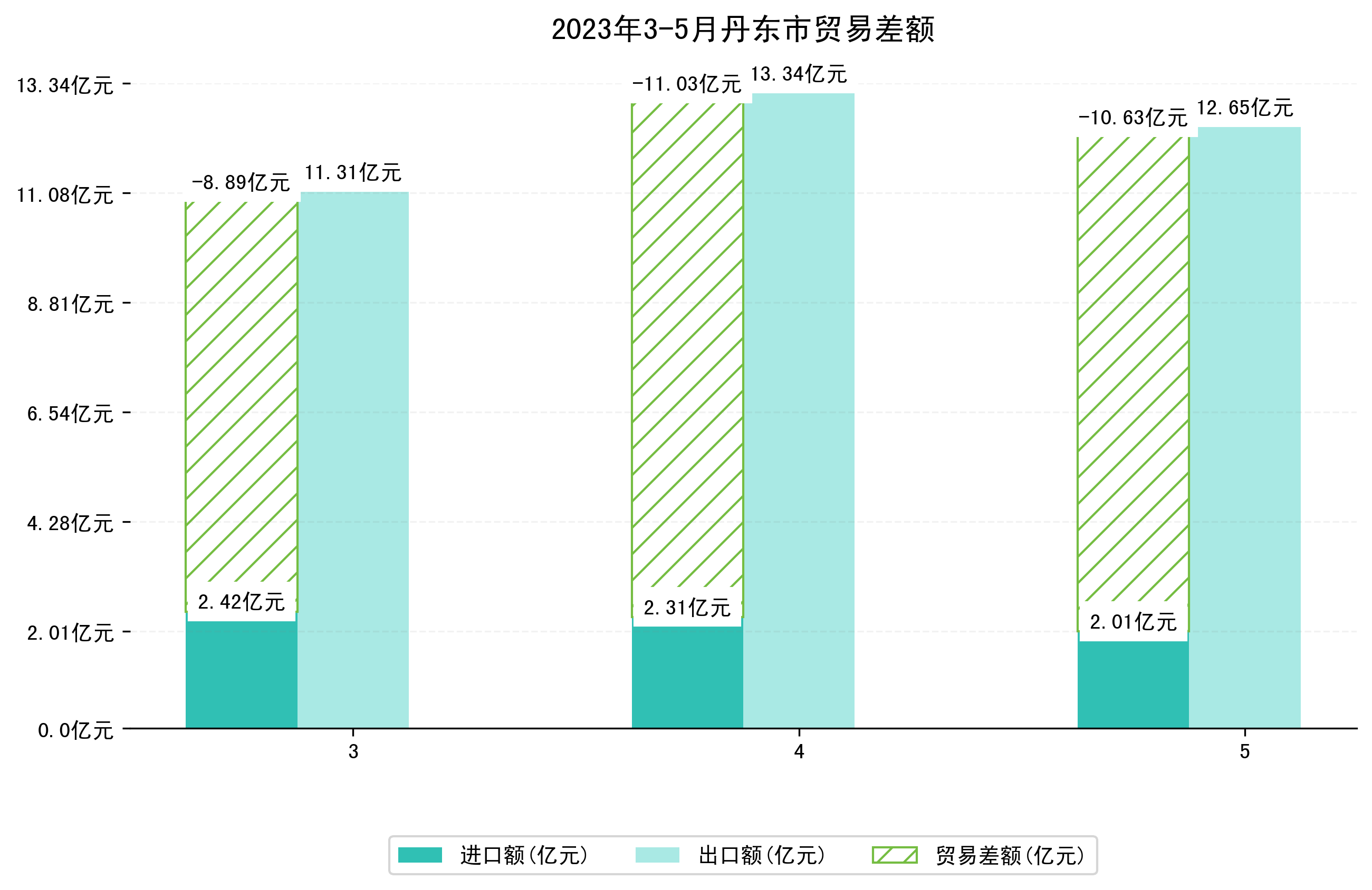 (图四:2023年3-5月丹东市贸易差额)
