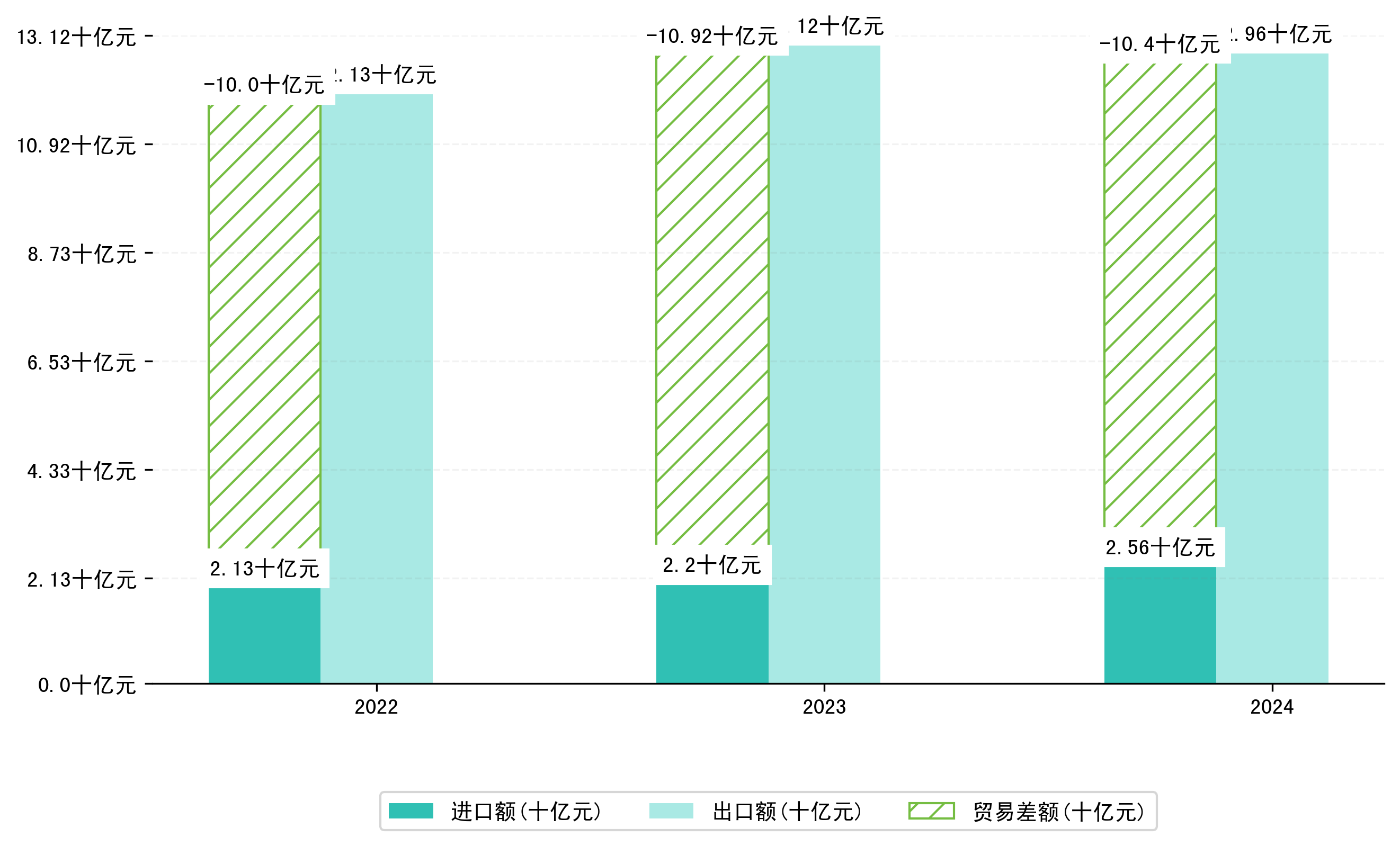 以美元计,2024年1-11月丹东市贸易差额为14,6259,7129万美元(贸易顺差),相比上年同期减少了9486,8900万美元,同比减少-6.09%。
