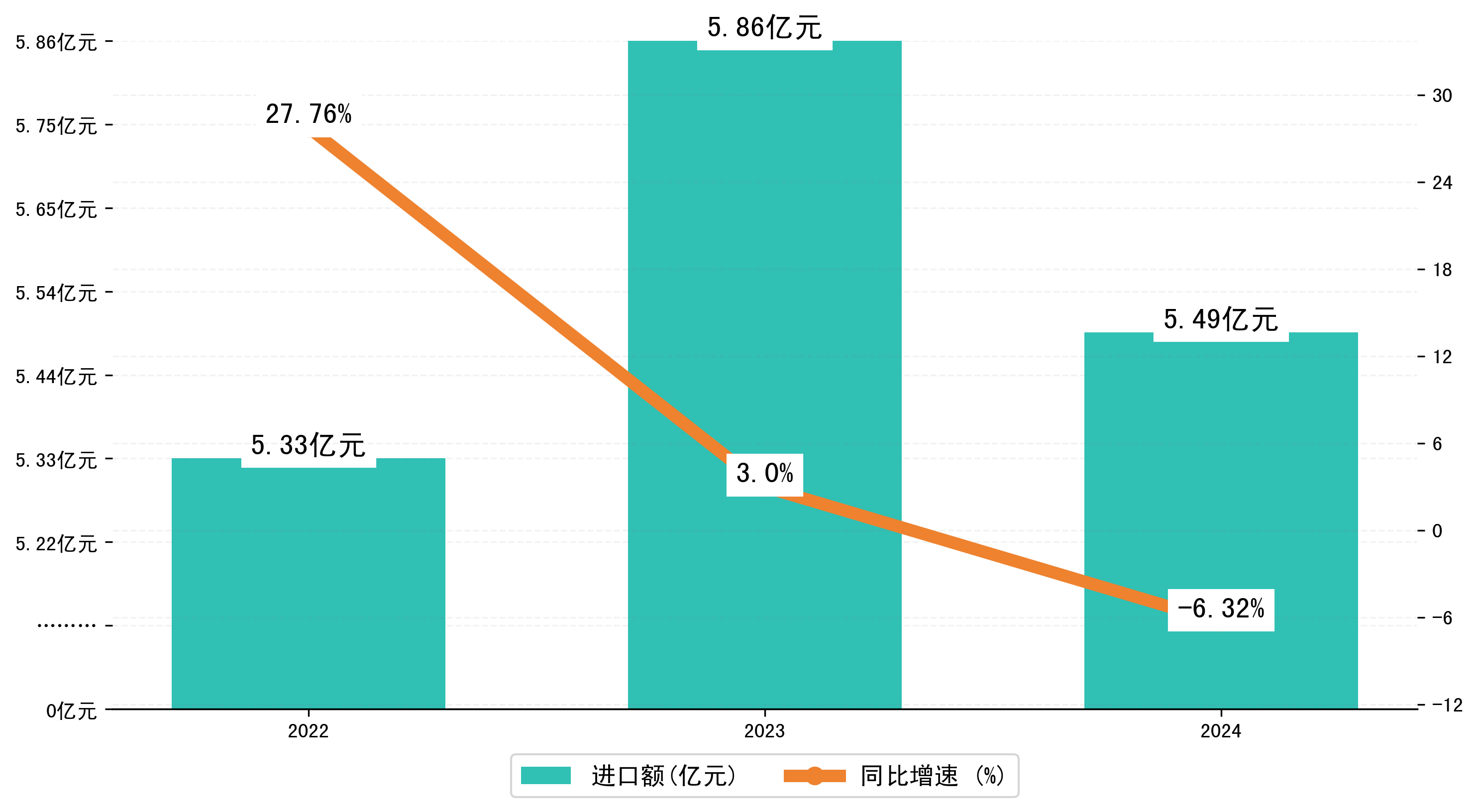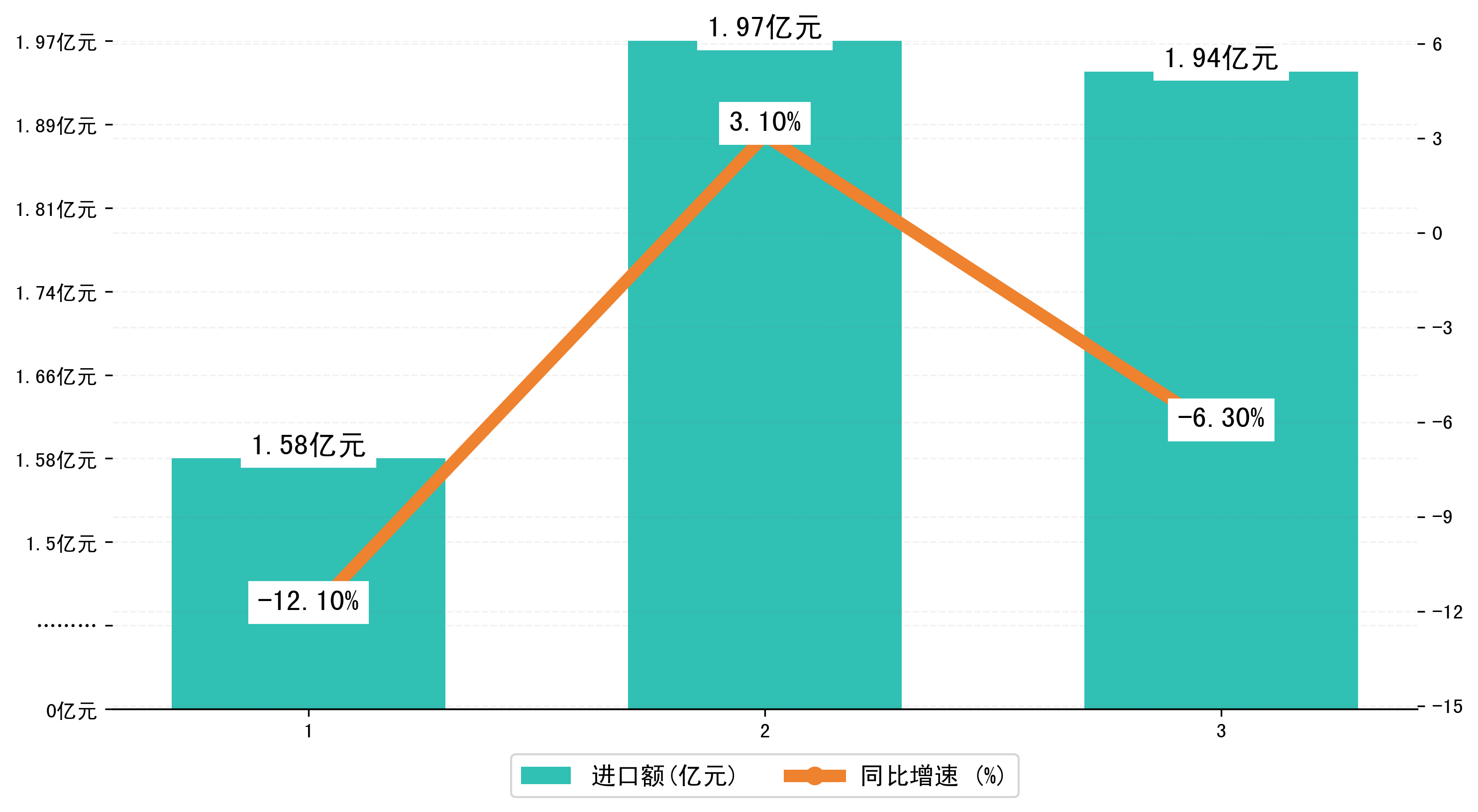 以人民币计,2024年1-3月丹东市进口额为5,4888.6949万元,相比上年同期减少了3703.3049万元,同比减少了-6.30%。