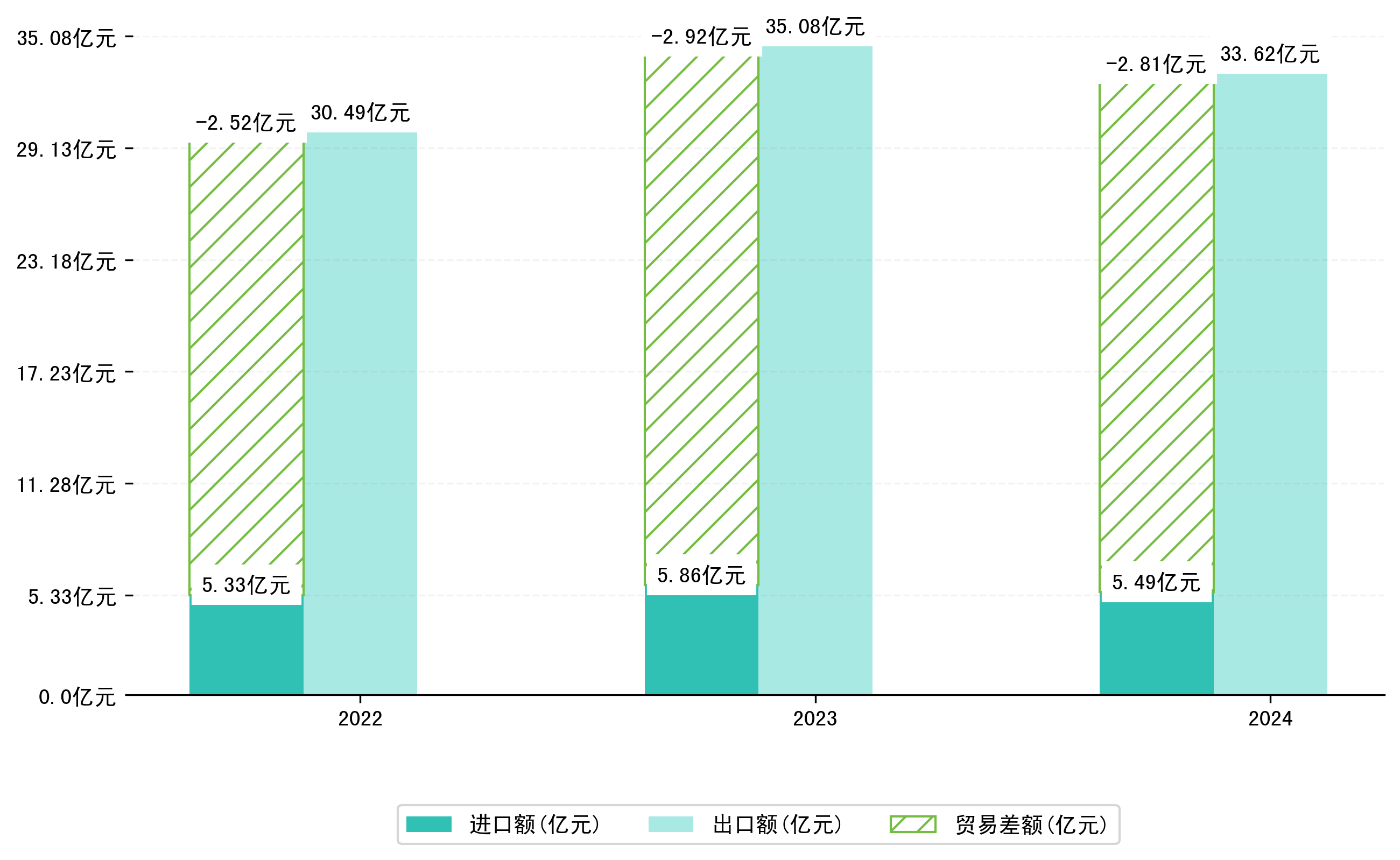 以人民币计,2024年1-3月丹东市贸易差额为28,1289,1106万元(贸易顺差),相比上年同期减少了1,0892,2039万元,同比减少-3.73%。