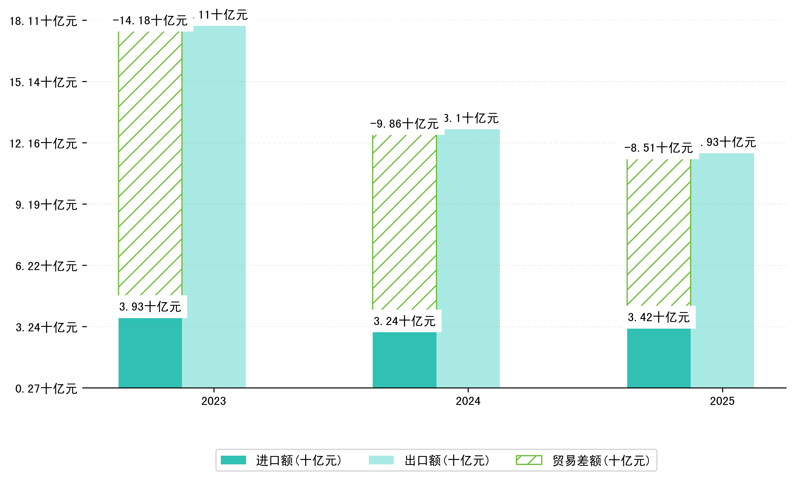 以美元计,2025年1-4月汕头市贸易差额为11,8516,1009万美元(贸易顺差),相比上年同期减少了2,0213,6158万美元,同比减少-14.57%。