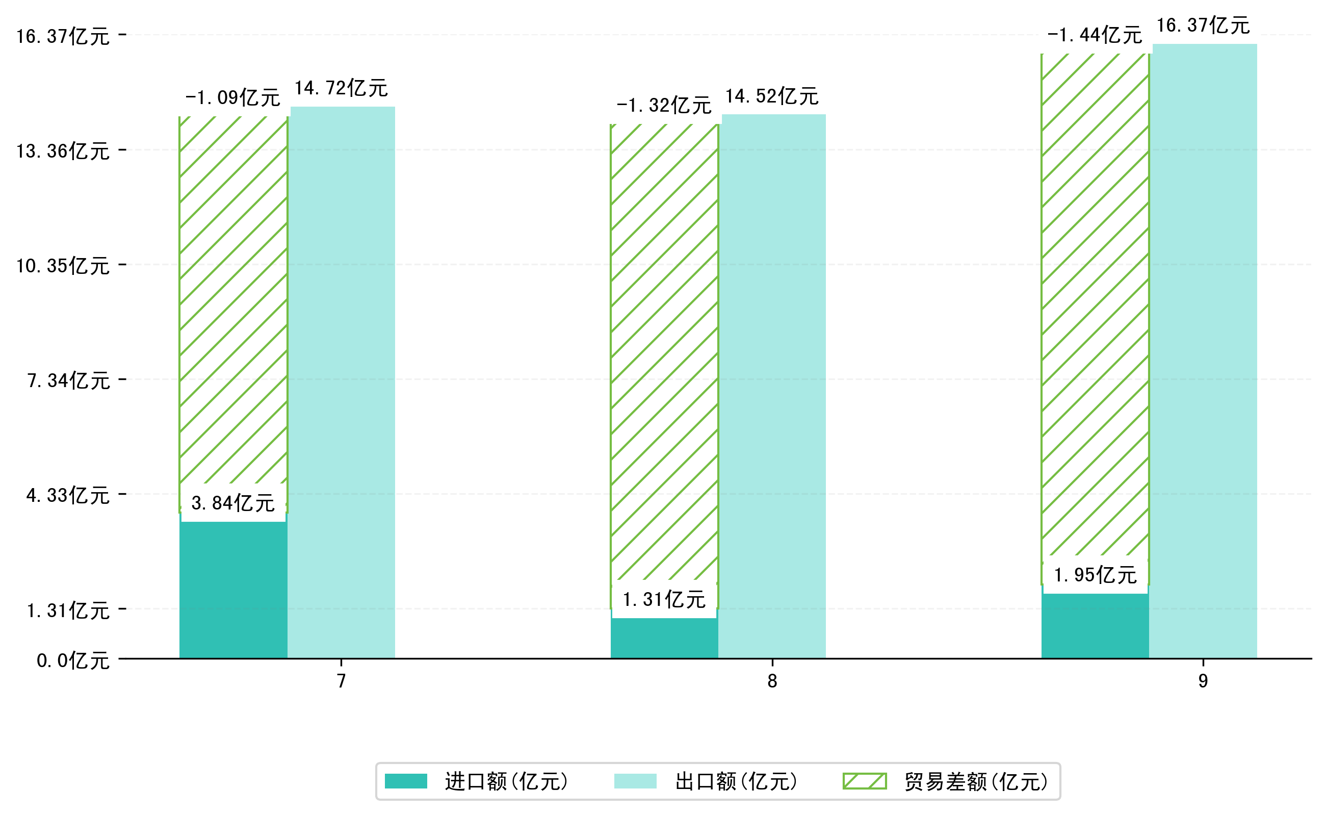 以人民币计,2025年9月丹东市贸易差额为14,4154,0300万元(贸易顺差),相比上月增加了1,2102,4249万元,即1750,5800万美元;相比上年同期增加了3,5614,7688万元,同比增加32.81%。