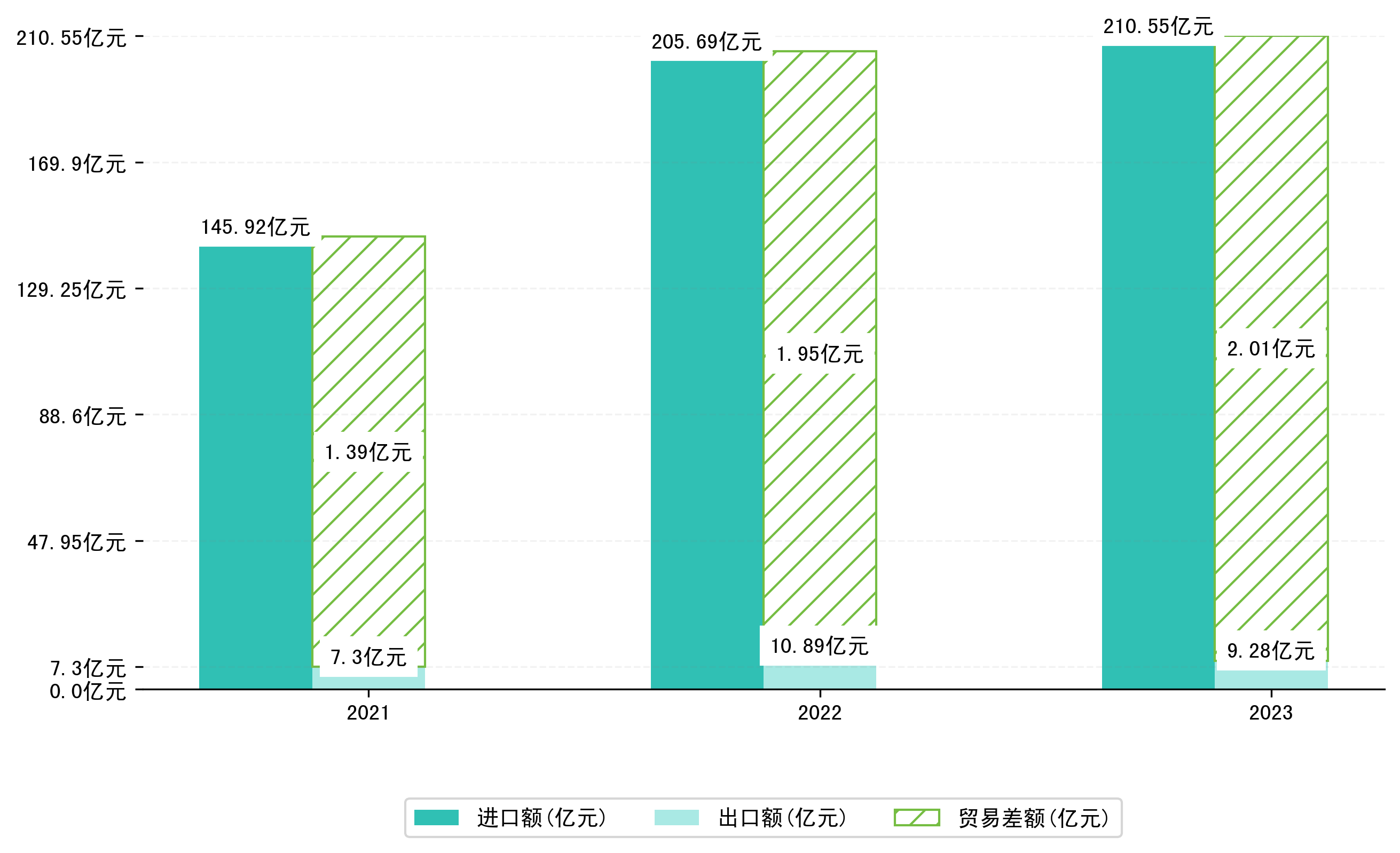 以人民币计,2023年2月大庆市贸易差额为88,3666,6735万元(贸易逆差),相比上月增加了24,5428,7428万元,即3,1433,6770万美元;相比上年同期增加了1,7436,0999万元,同比增加-1.93%。