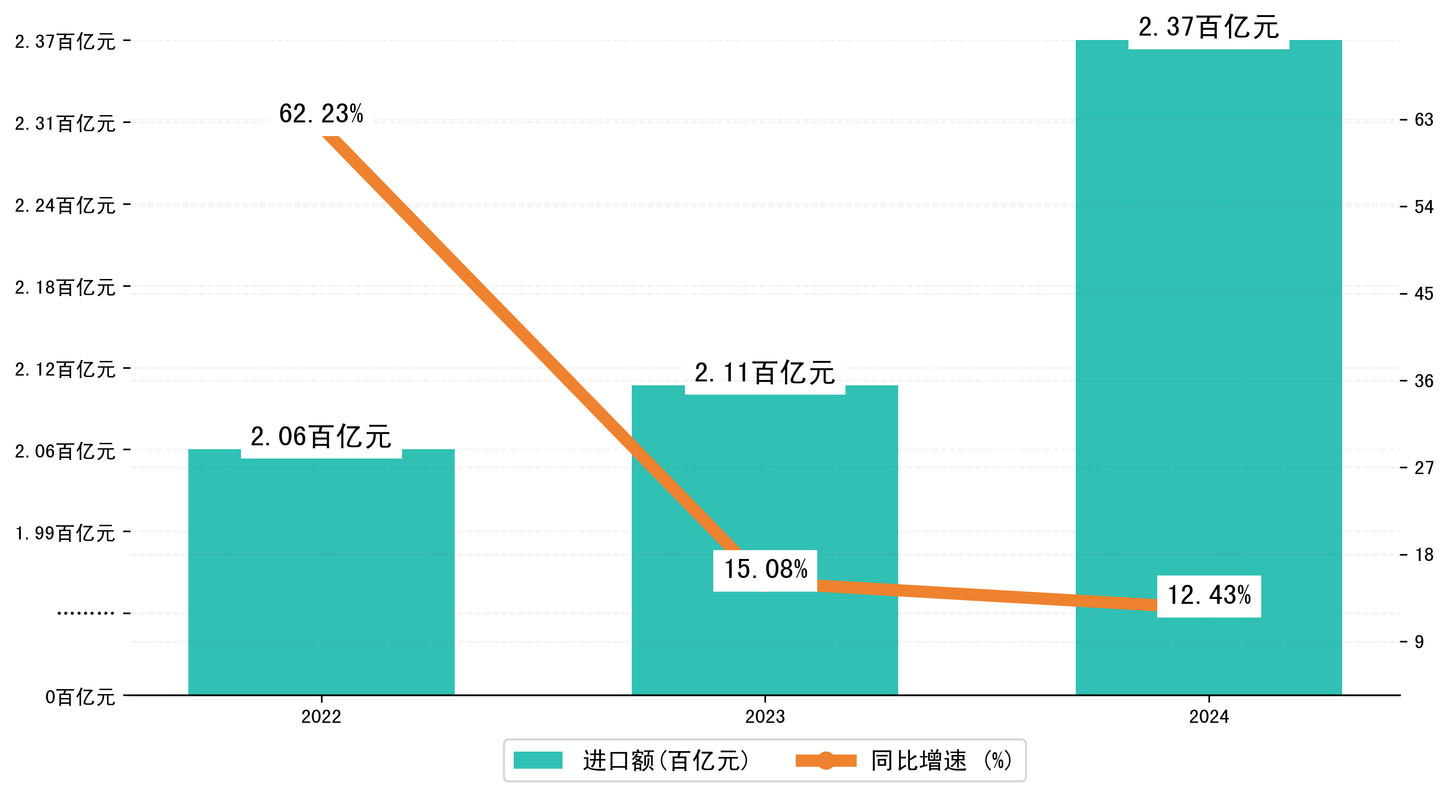 以人民币计,2024年1-2月大庆市进口额为236,7158.2772万元,相比上年同期增加了26,1627.6565万元,同比增加了12.40%。