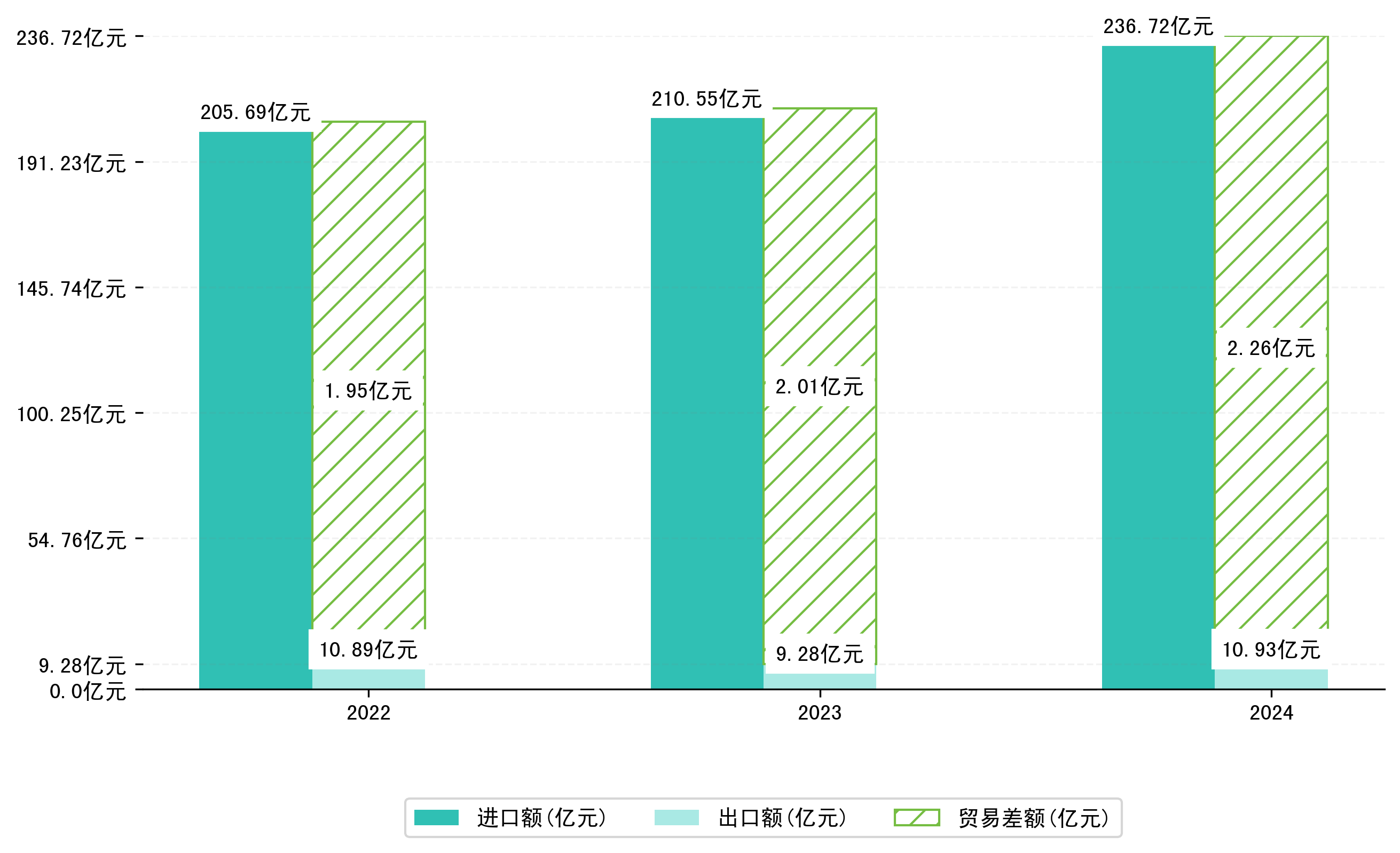 以人民币计,2024年1-2月大庆市贸易差额为225,7817,0102万元(贸易逆差),相比上年同期减少了24,5054,9204万元,同比减少12.18%。