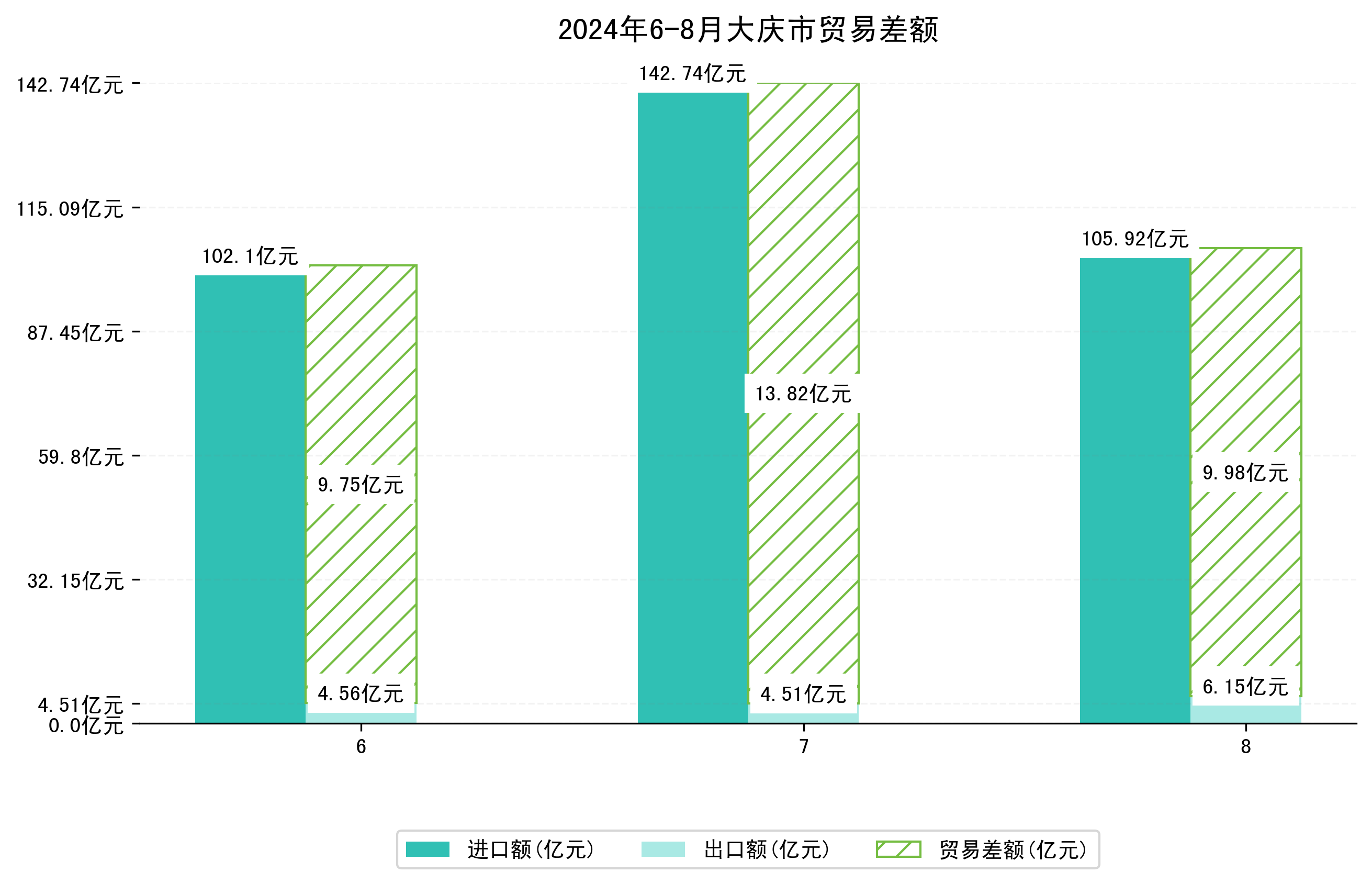 2024年8月大庆市进出口总额及进出口差额统计分析