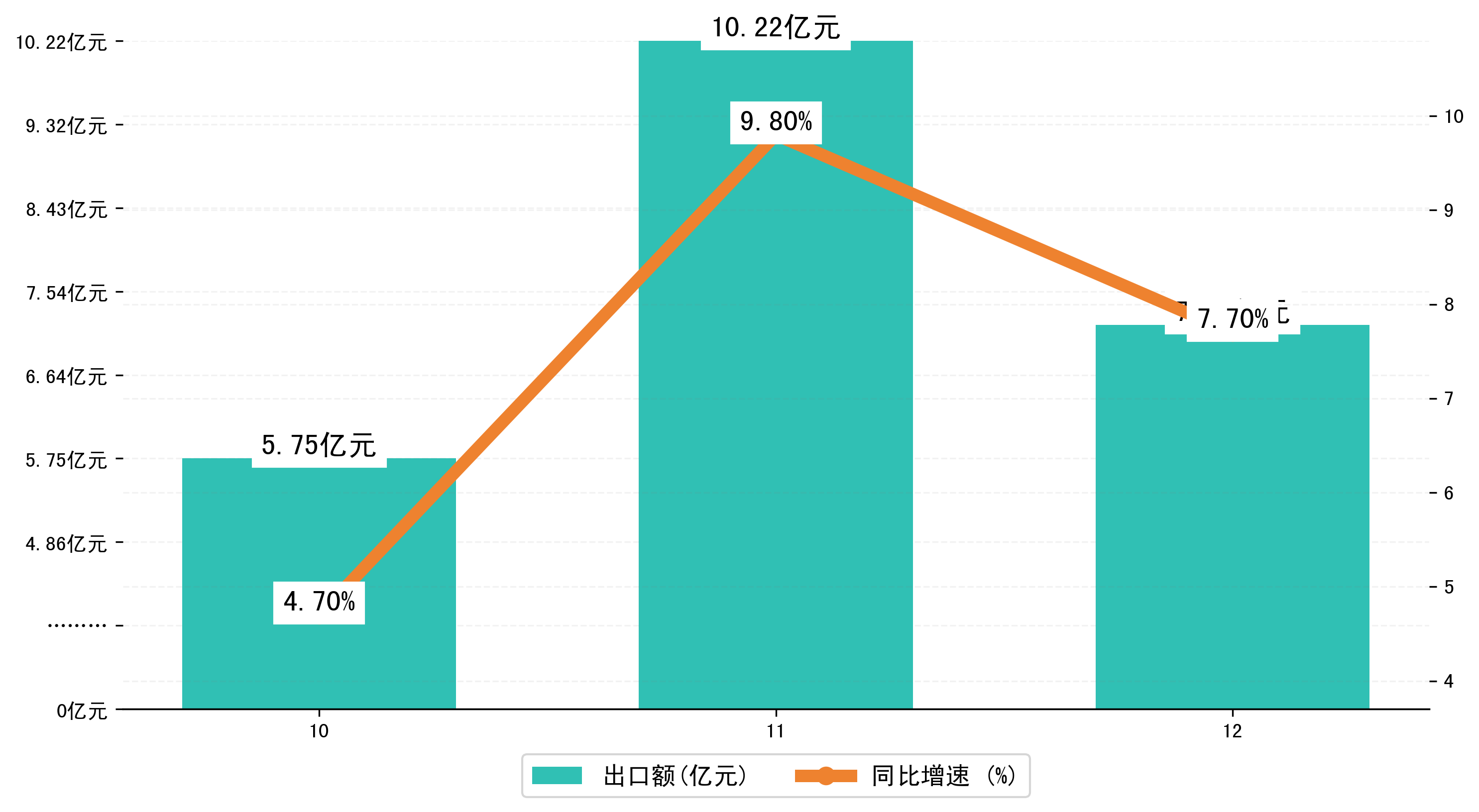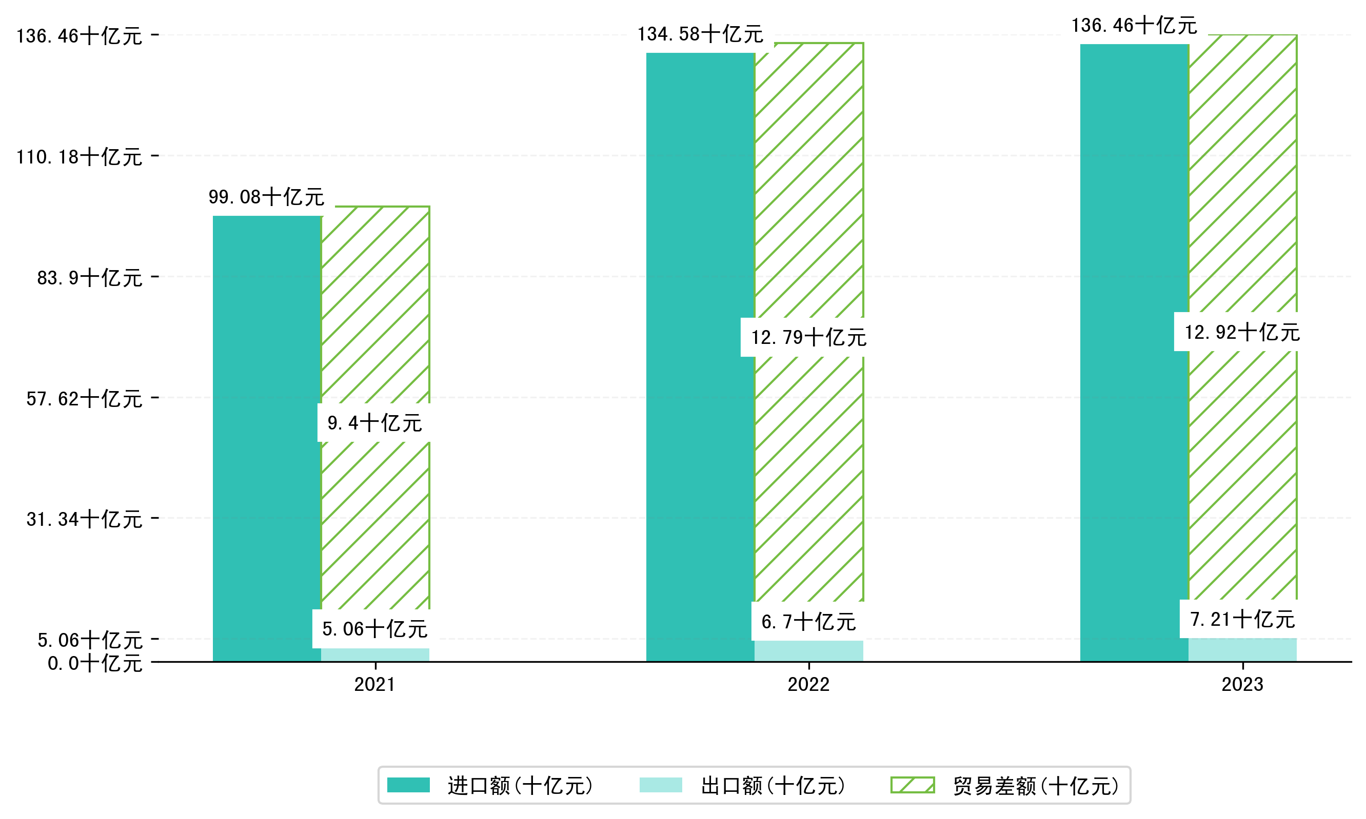 以人民币计,2023年12月大庆市贸易差额为132,7875,7160万元(贸易逆差),相比上月增加了5,9818,2332万元,即8230,6913万美元;相比上年同期减少了5,7183,6632万元,同比减少4.5%。