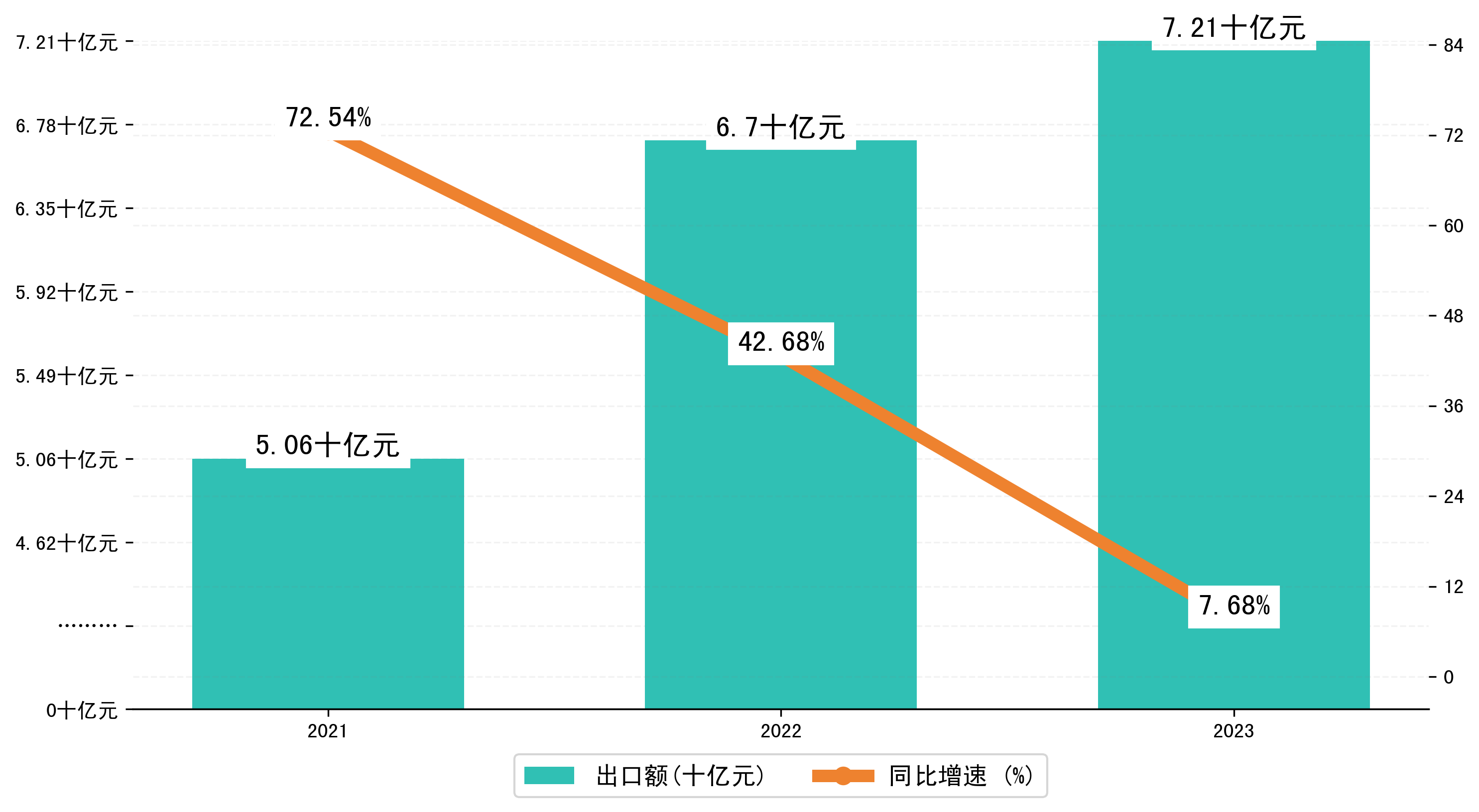 以人民币计,2023年1-12月大庆市出口额为72,1374.0695万元,相比上年同期增加了5,1459.2206万元,同比增加了7.70%。