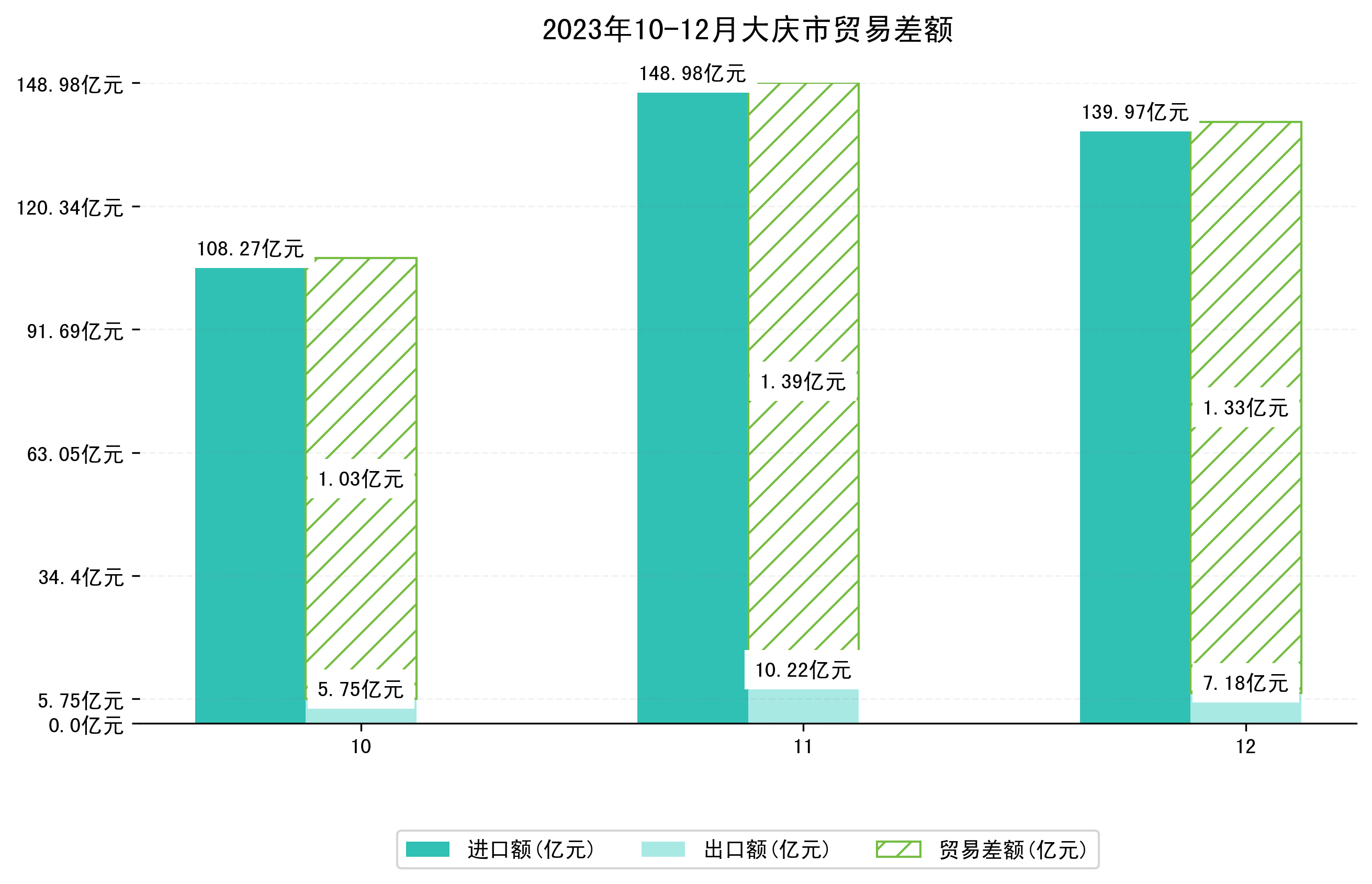 2023年12月大庆市进出口总额及进出口差额统计分析