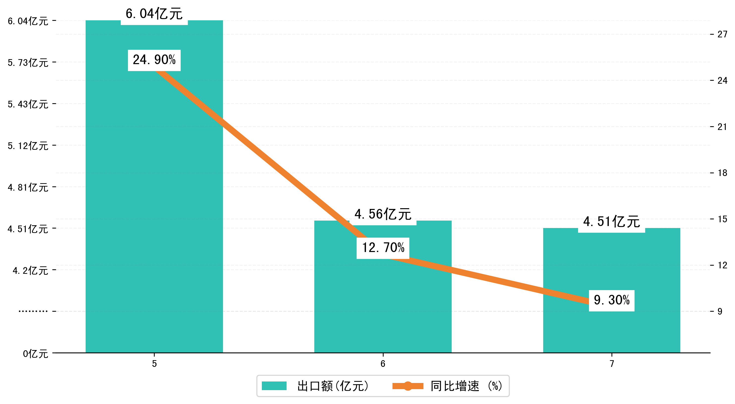 (图二:2024年5-7月大庆市出口额)