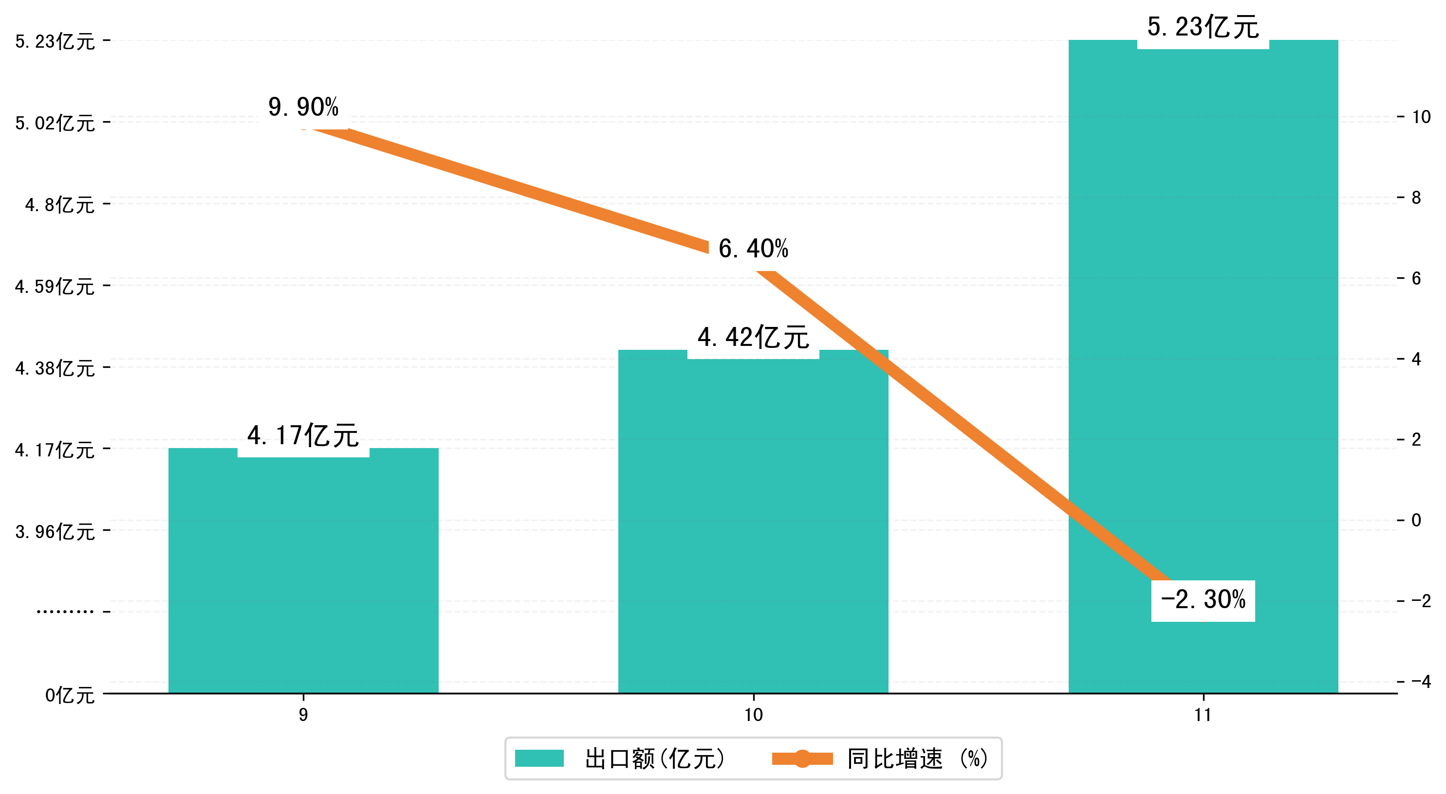 以人民币计,2024年11月大庆市贸易差额为134,4539,8614万元(贸易逆差),相比上月减少了61,2885,8213万元,即8,5599,4298万美元;相比上年同期增加了4,3154,0878万元,同比增加-3.11%。