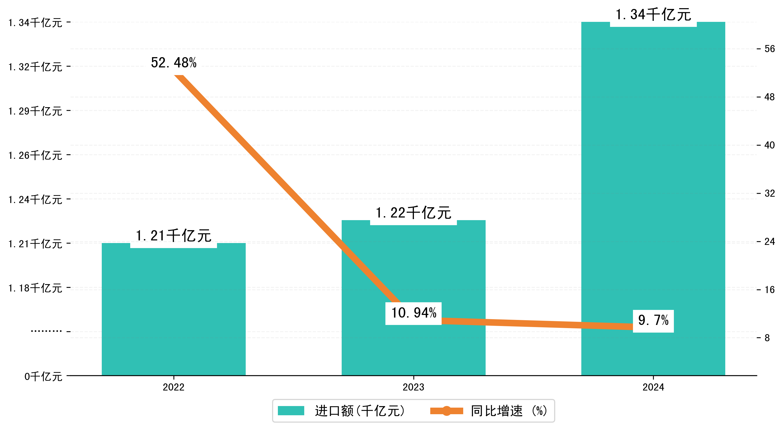 以人民币计,2024年1-11月大庆市进口额为1343,4125.4908万元,相比上年同期增加了118,8266.2861万元,同比增加了9.70%。