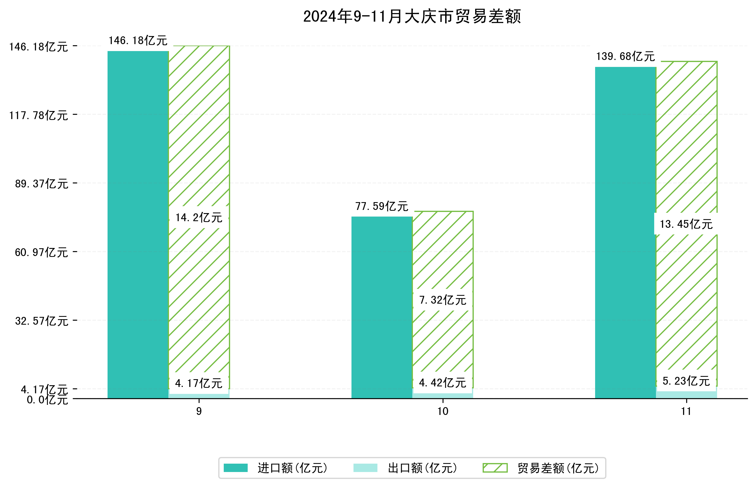 2024年11月大庆市进出口总额及进出口差额统计分析