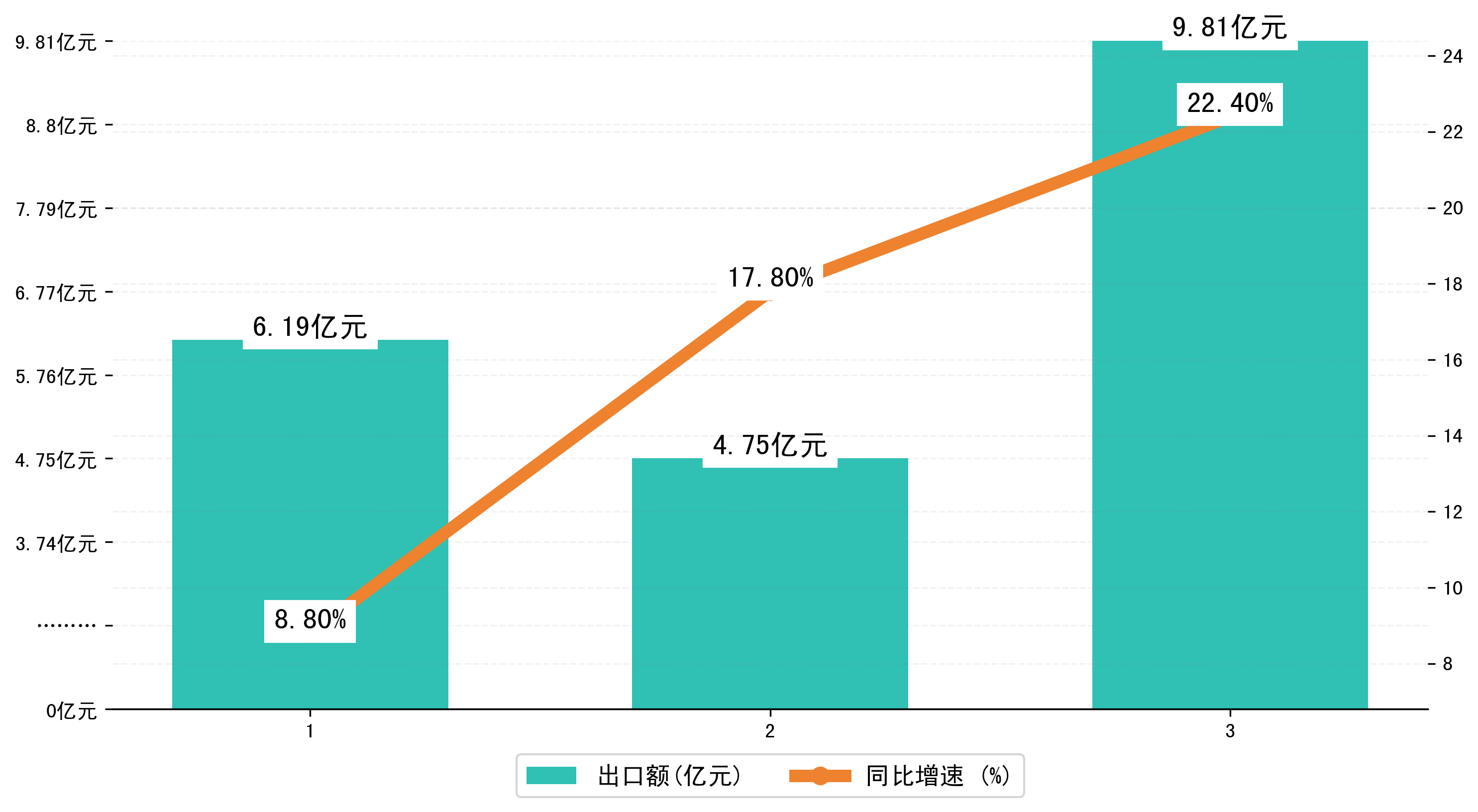 以美元计,2024年3月大庆市出口额为1,3809.5093万美元,相比上月增加了7124.9902万美元;相比上年同期增加了2674.3514万美元,同比增加18.80%。