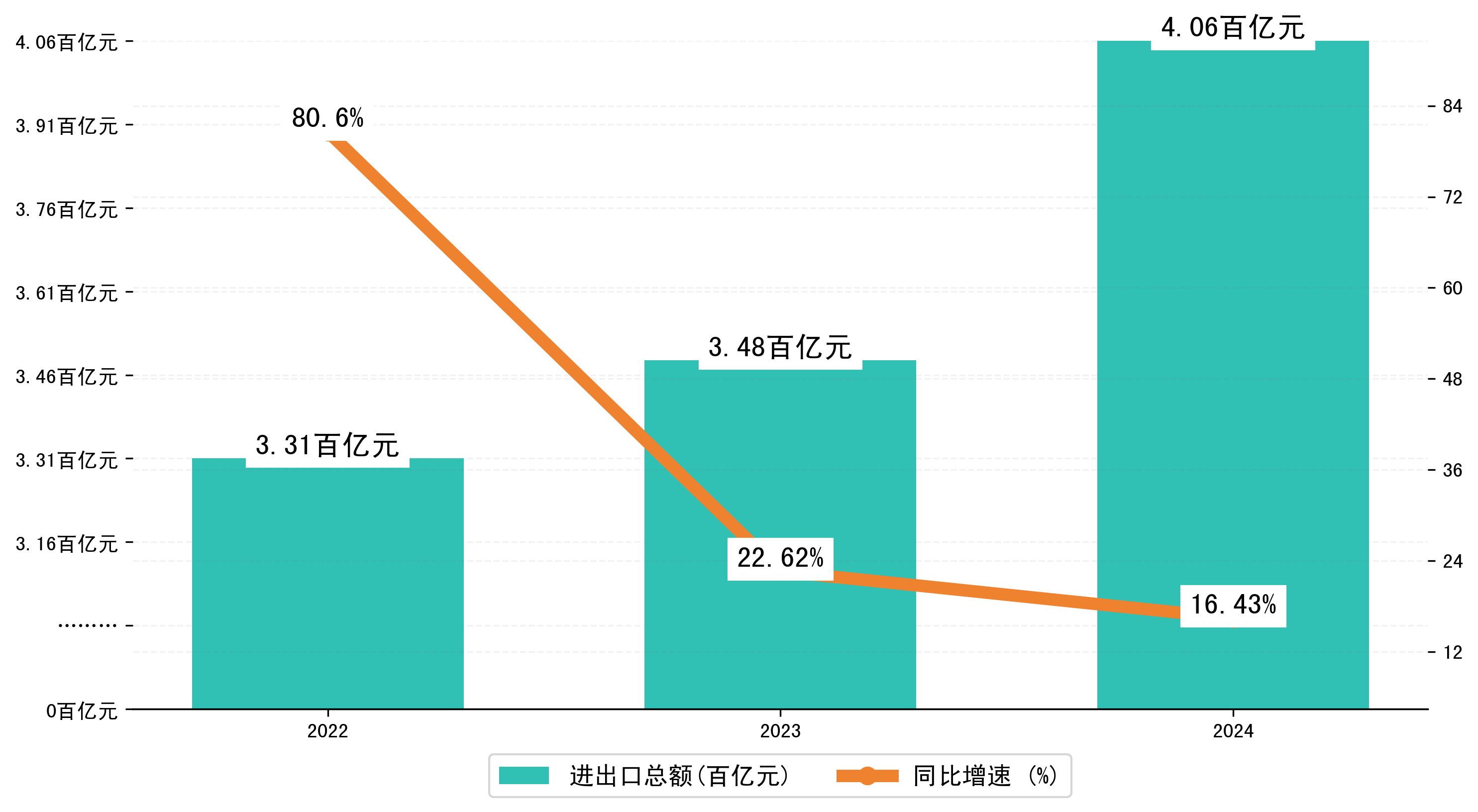 以人民币计,2024年1-3月大庆市进出口总额为405,6757.4931万元,相比上年同期增加了57,2335.7774万元,同比增加了16.40%。