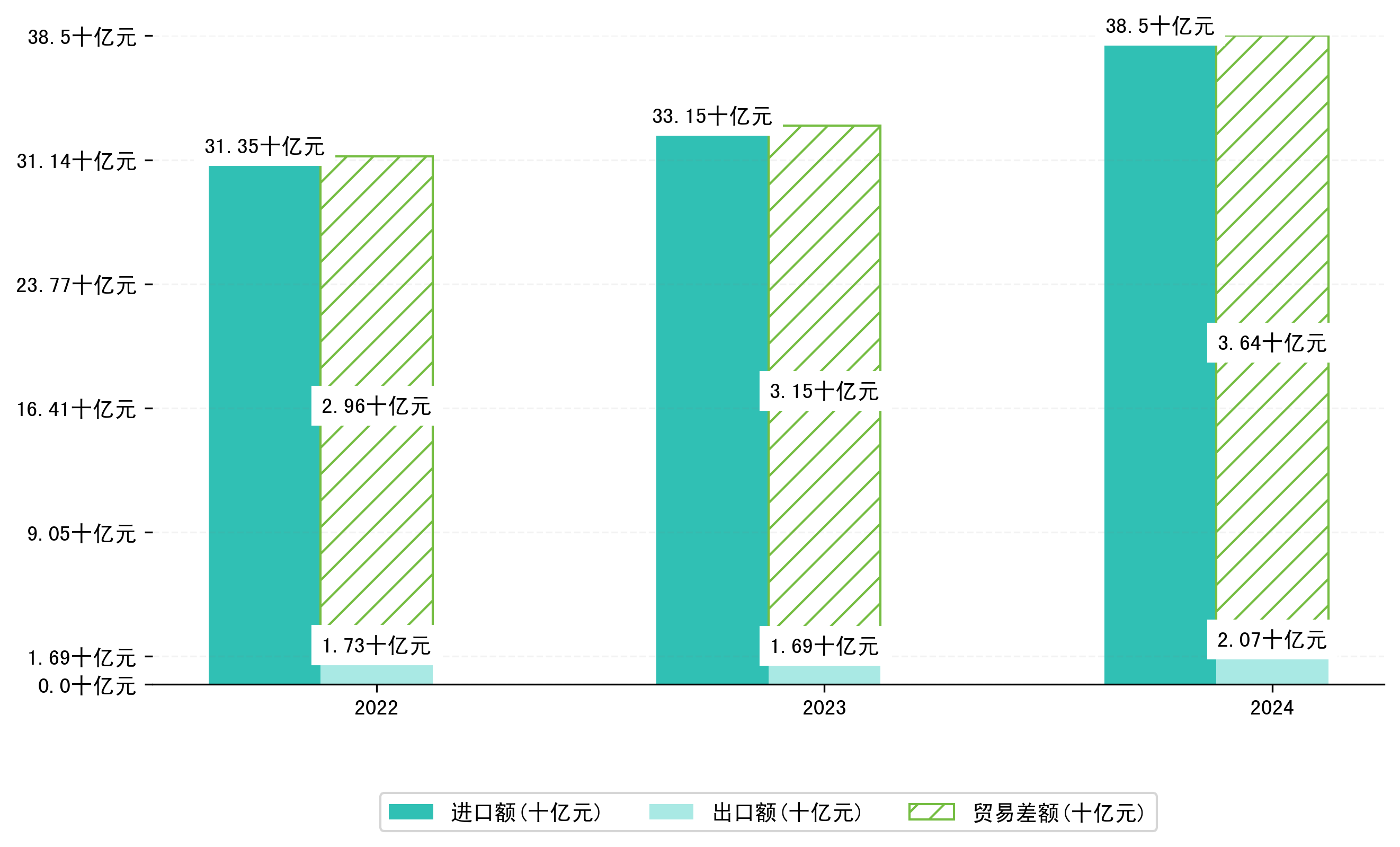 以人民币计,2024年3月大庆市贸易差额为138,4349,6647万元(贸易逆差),相比上月减少了46,2822,6293万元,即6,5430,2325万美元;相比上年同期减少了25,1007,5902万元,同比减少22.15%。