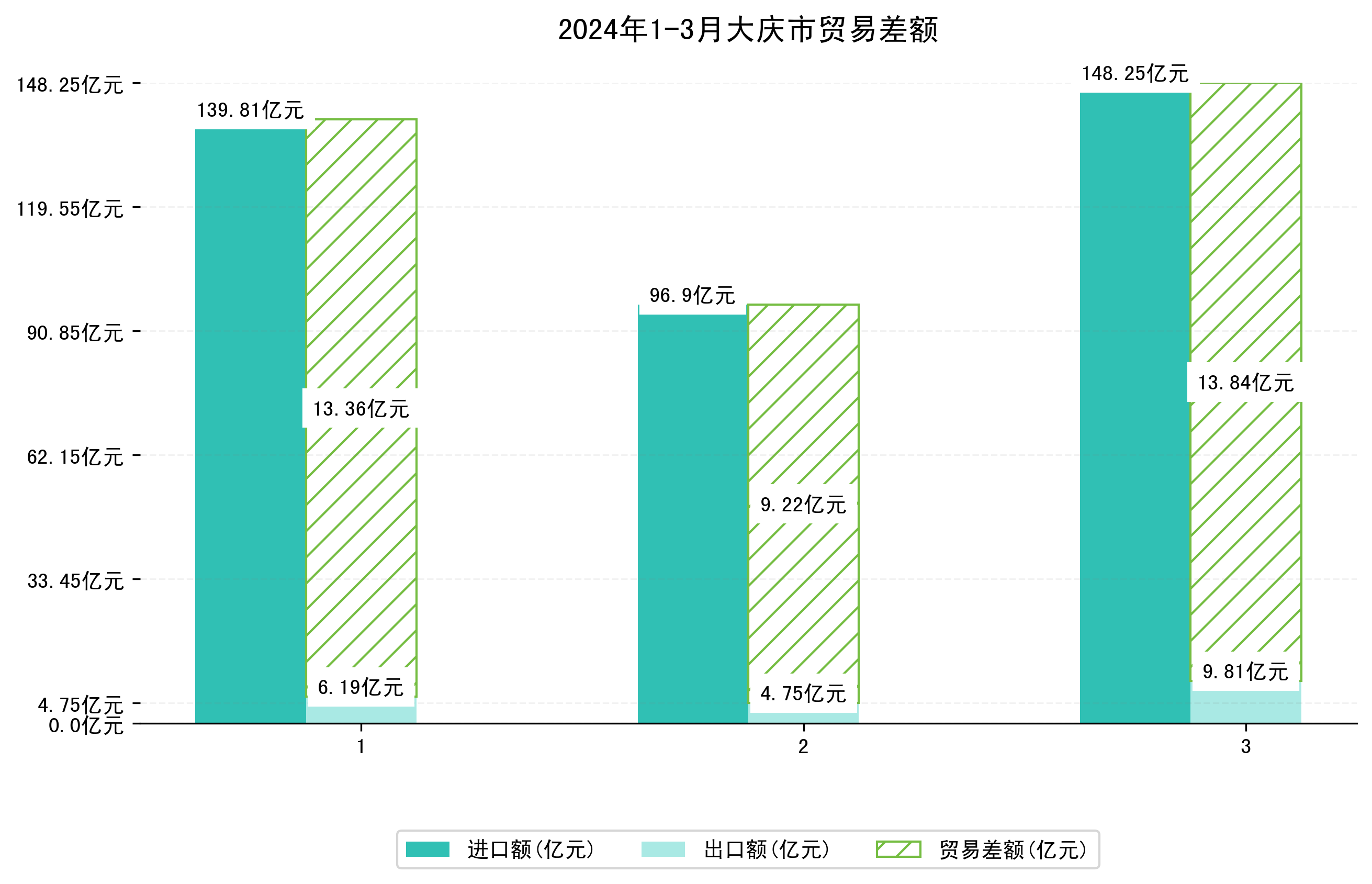 2024年3月大庆市进出口总额及进出口差额统计分析