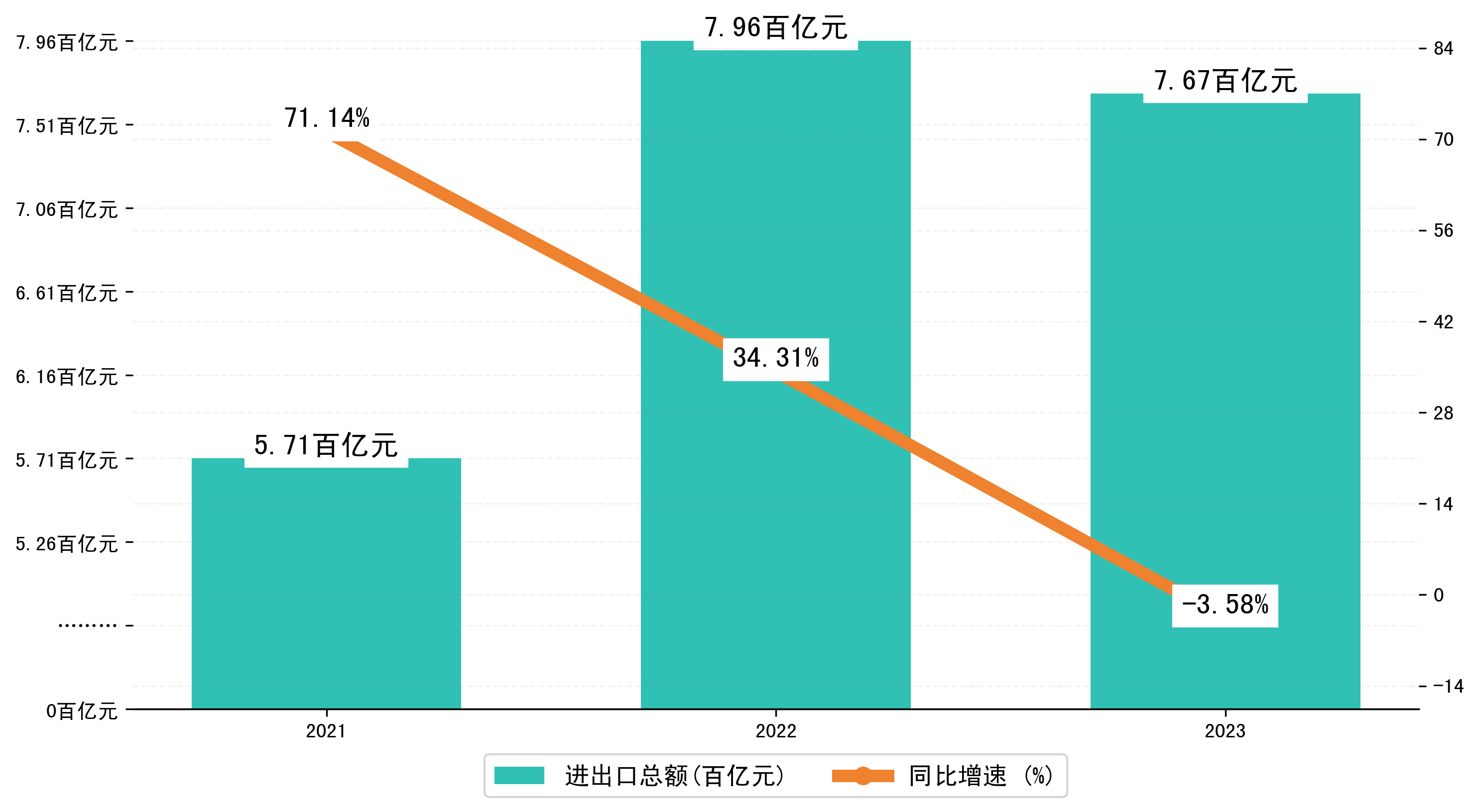 以人民币计,2023年1-7月大庆市进出口总额为767,2072.145万元,相比上年同期减少了28,4888.7931万元,同比减少了-3.60%。