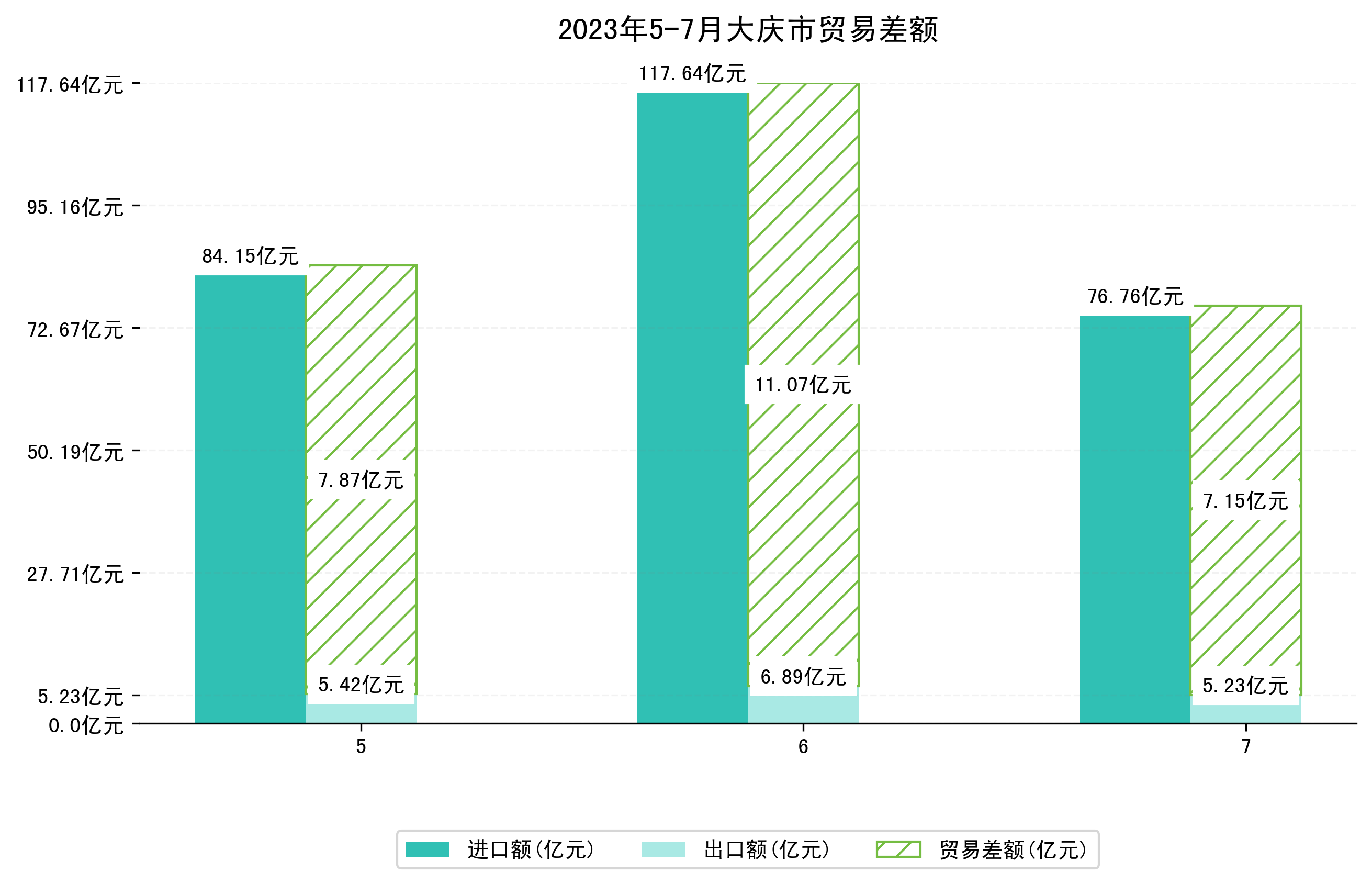 2023年7月大庆市进出口总额及进出口差额统计分析