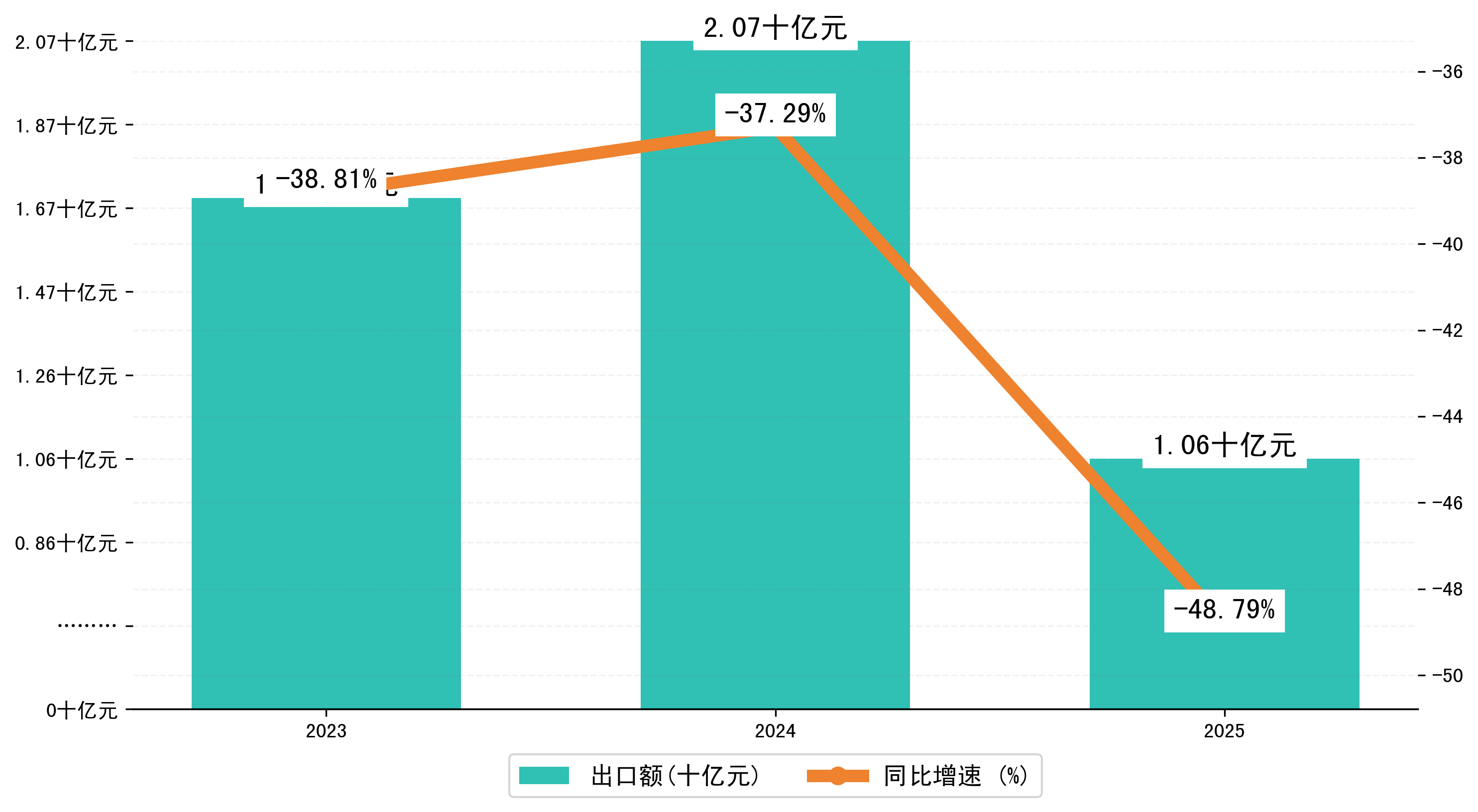 以人民币计,2025年1-3月大庆市出口额为10,6072.9863万元,相比上年同期减少了10,1068.024万元,同比减少了-48.80%。