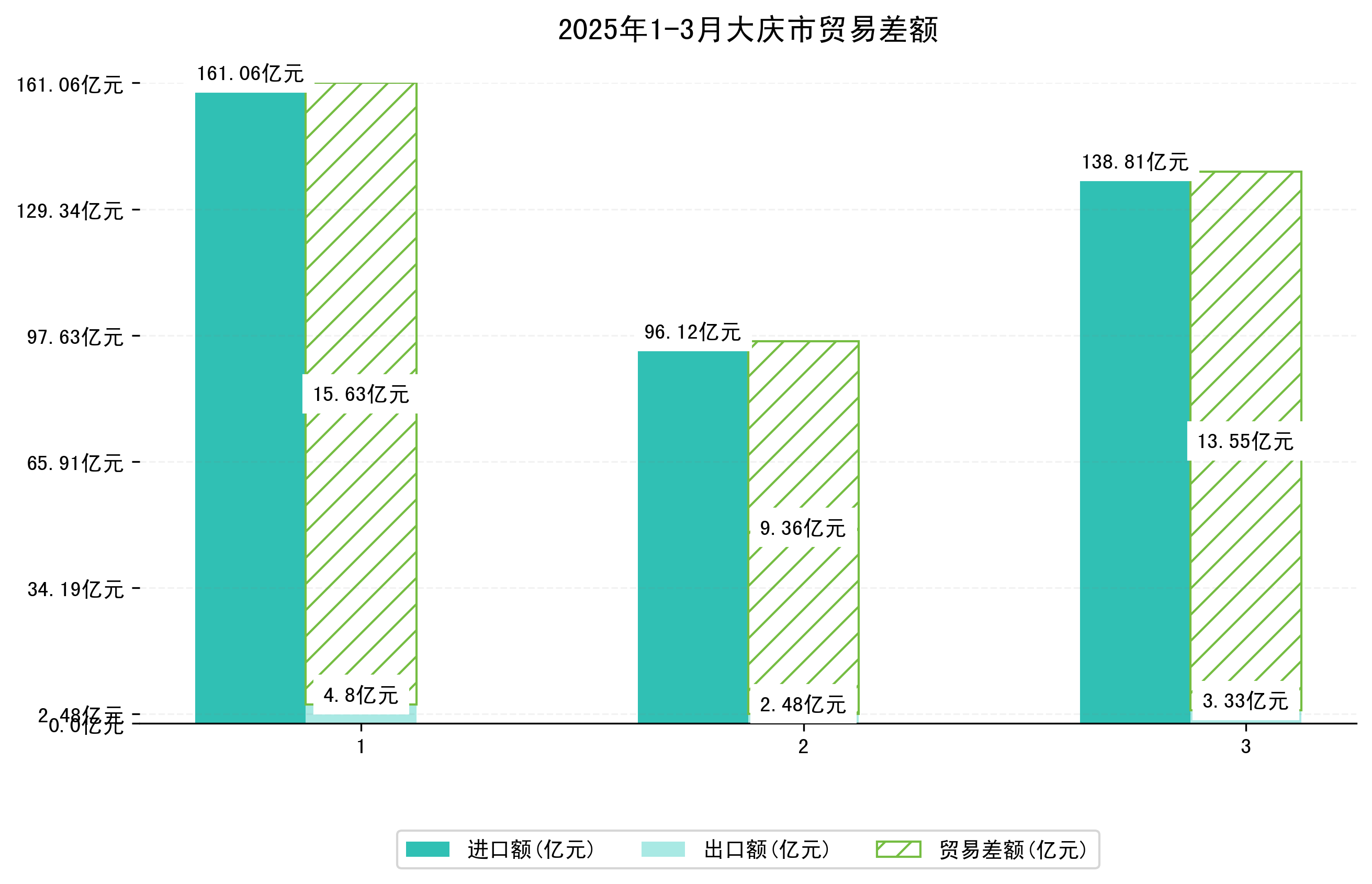 2025年3月大庆市进出口总额及进出口差额统计分析