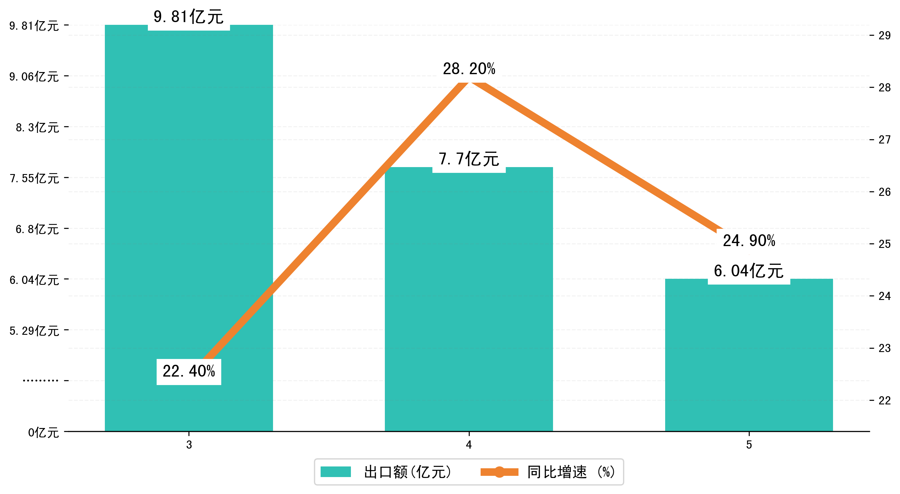 以人民币计,2024年1-5月大庆市出口额为34,4462.6233万元,相比上年同期增加了6,8623.3519万元,同比增加了24.90%。