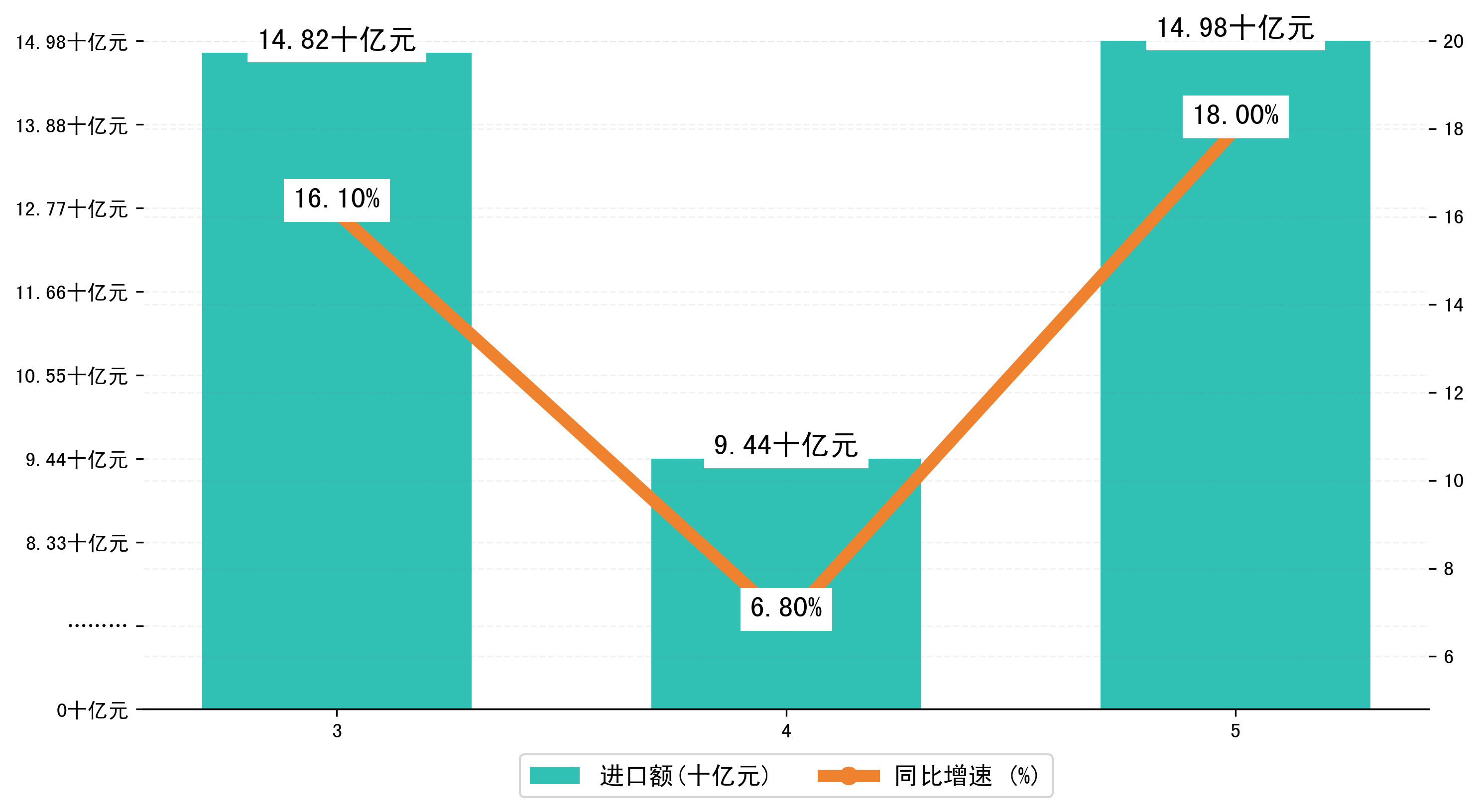 以人民币计,2024年5月大庆市进口额为149,8459.0762万元,相比上月增加了55,4425.4298万元;相比上年同期增加了65,6966.2489万元,同比增加了18.00%。