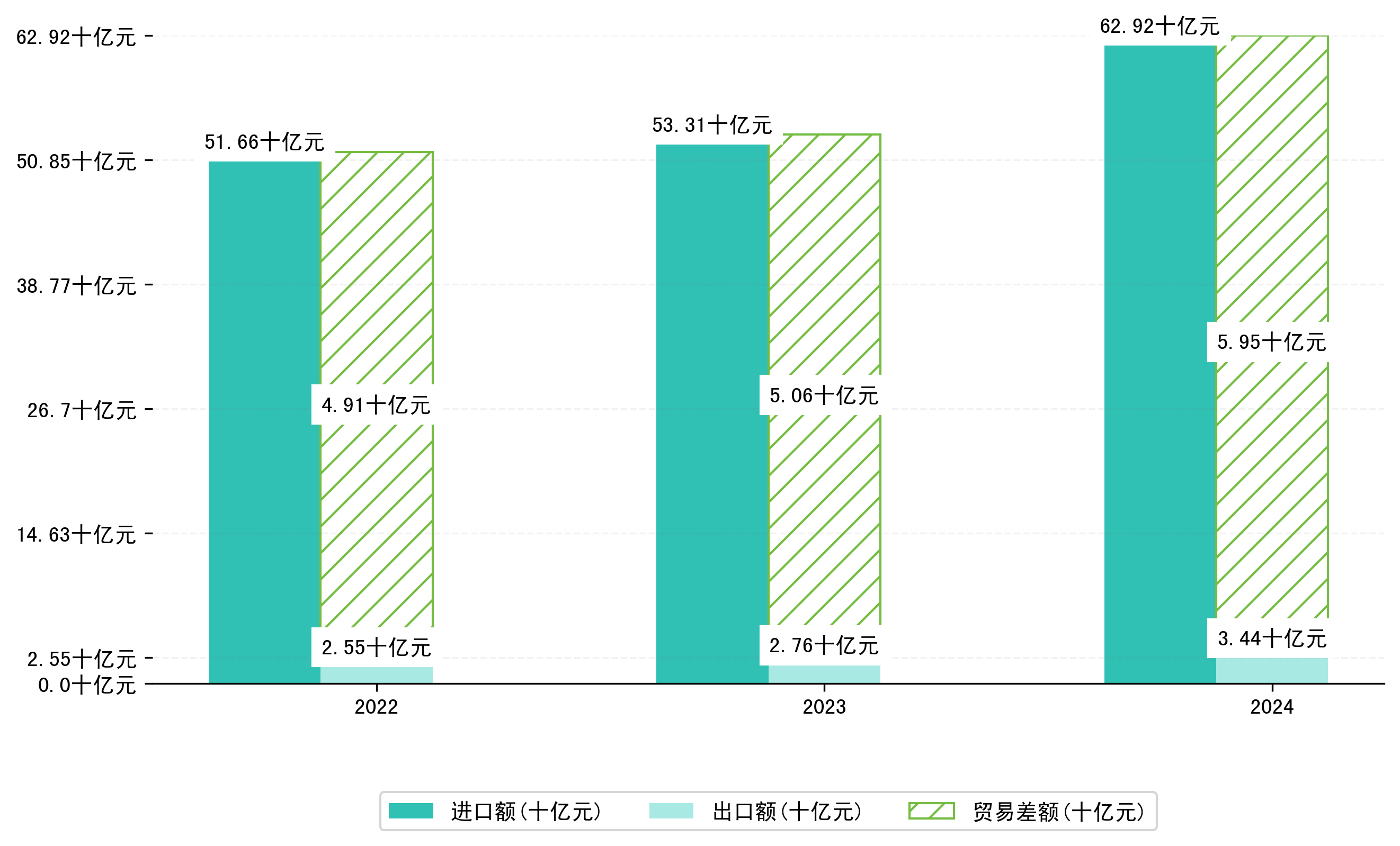 以人民币计,2024年1-5月大庆市进口额为629,2109.2054万元,相比上年同期增加了96,1002.7844万元,同比增加了18.00%。