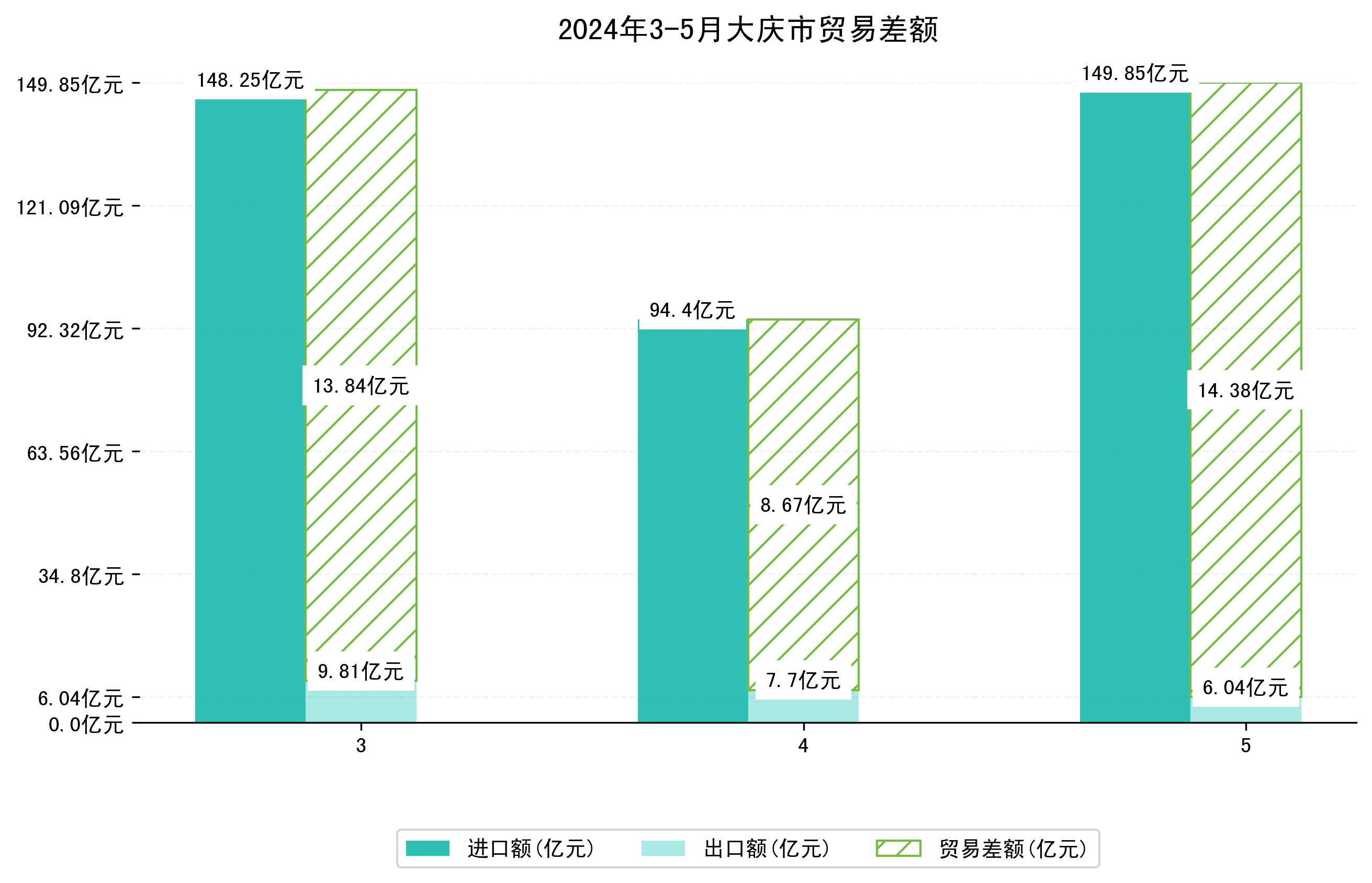 2024年5月大庆市进出口总额及进出口差额统计分析